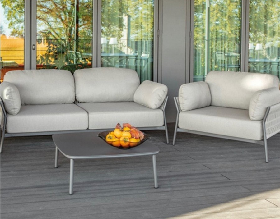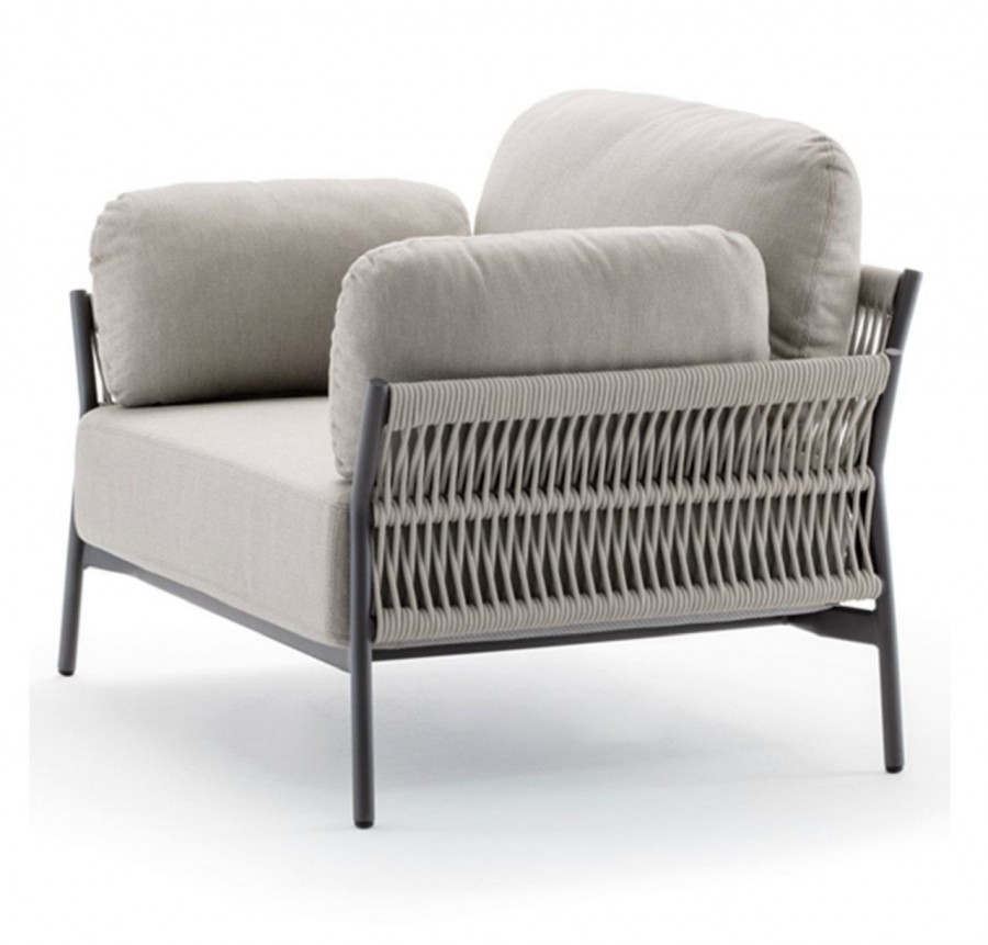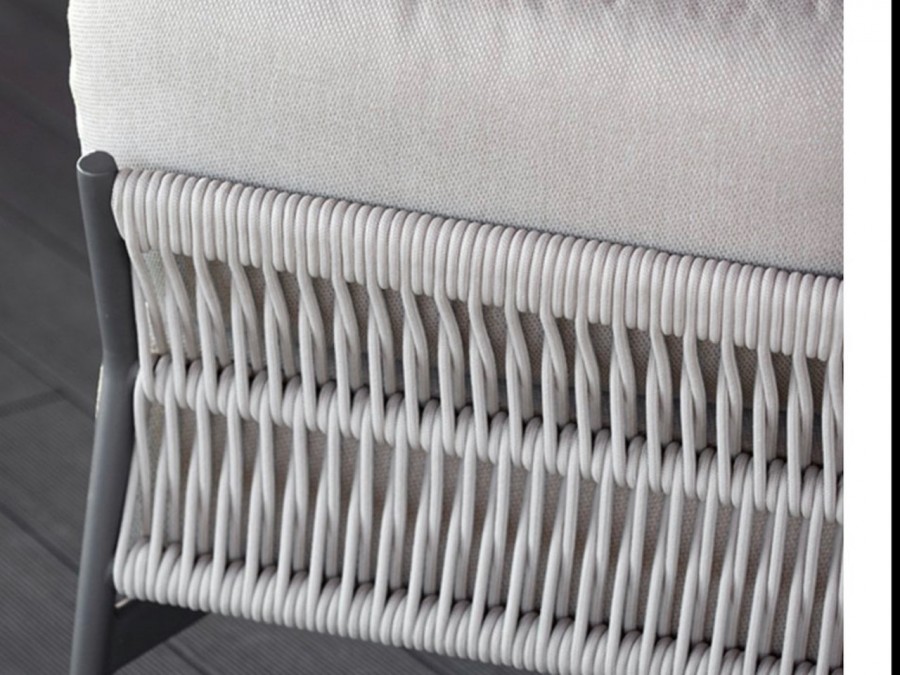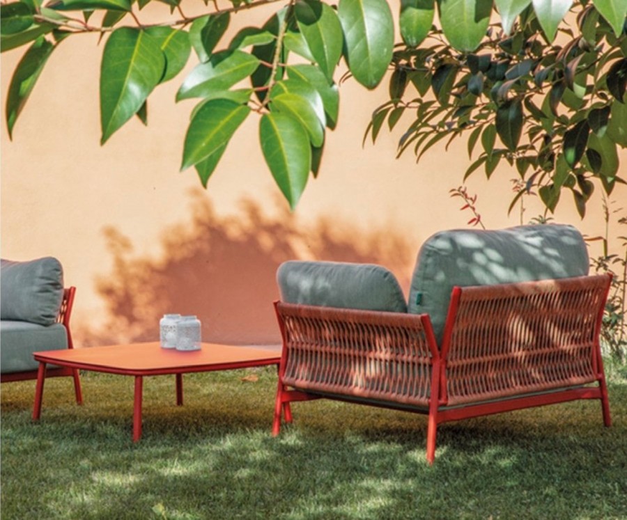 Nikki One Seater Lounge Chair, Two Seater Love Seat and Matching Cocktail Table / Available in two colour combinations: Red painted frame with red ropes and Anthracite cushions or Anthracite frame with cream ropes and cream matching cushions / Removable Seat, Back and Side Cushions for added comfort / Can Be Used Indoor And Outdoor / Generous Seating Proportions / Cocktail Table with Aluminium Top / OLEFIN Fabrics Are The Best Wearing Of All Outdoor Fabrics As They Dry Quickly And Are Fade And Stain Resistant / Polyester Fabric Has The Strongest Yarn Whilst Being Inexpensive And Dries Quickly / Ideal for all Hotels, Restaurants and Hospitality Environments / Only Available In Fabric Illustrated.