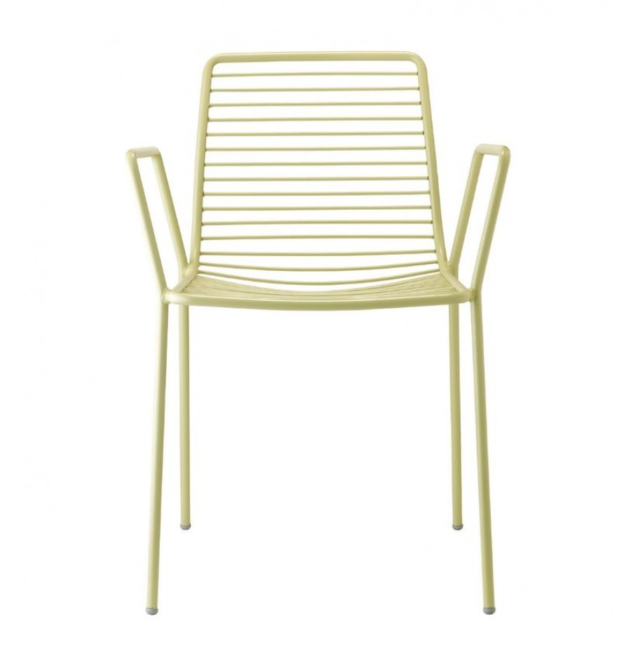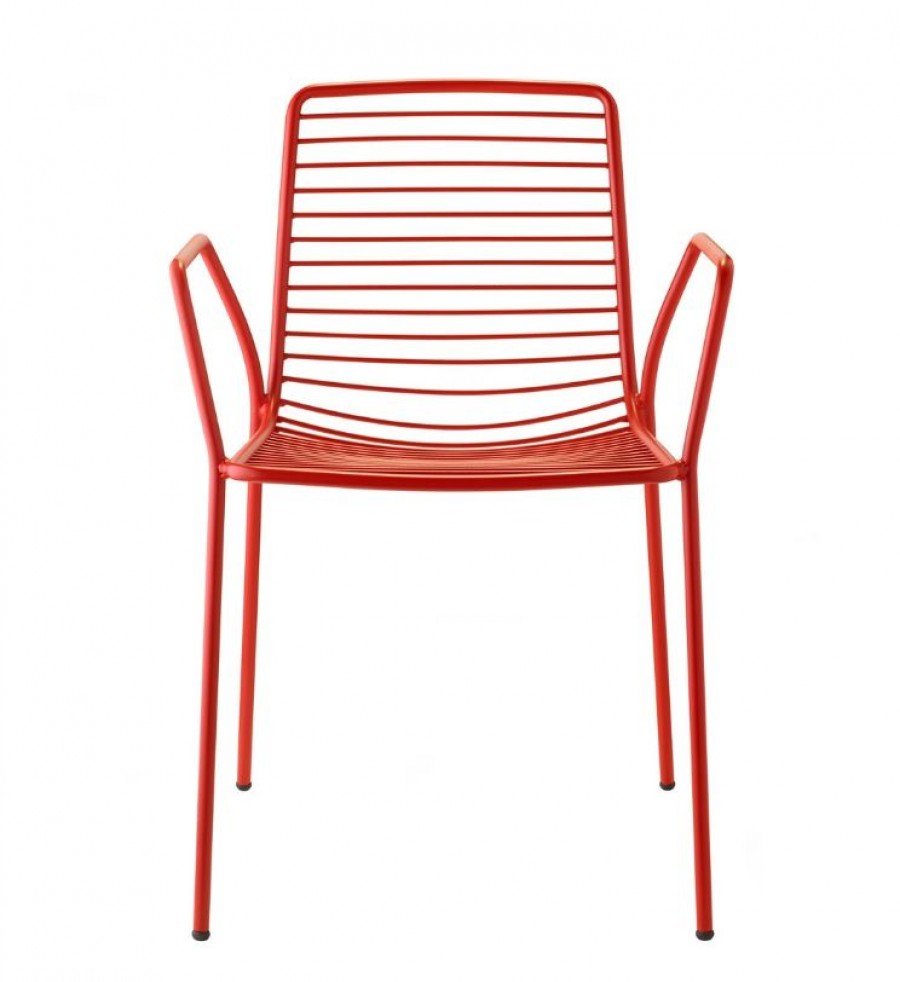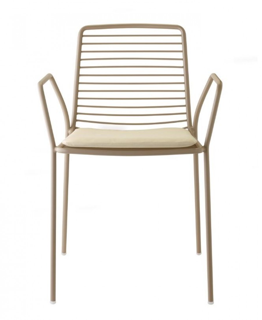 Orlando Arm Chair / Round Tubular Metal Shell And Frame With Integrated Arms / Horizontal Rodded Slats / Painted In Various Outdoor Colour Finishes / On Glides / Upcharge For Removable Water Repellent Seat Cushion / Seat Cushion Only Available In One Colour Option / Suitable For All Year Outdoor Use / Ideal For All Outdoor Dining Purposes.