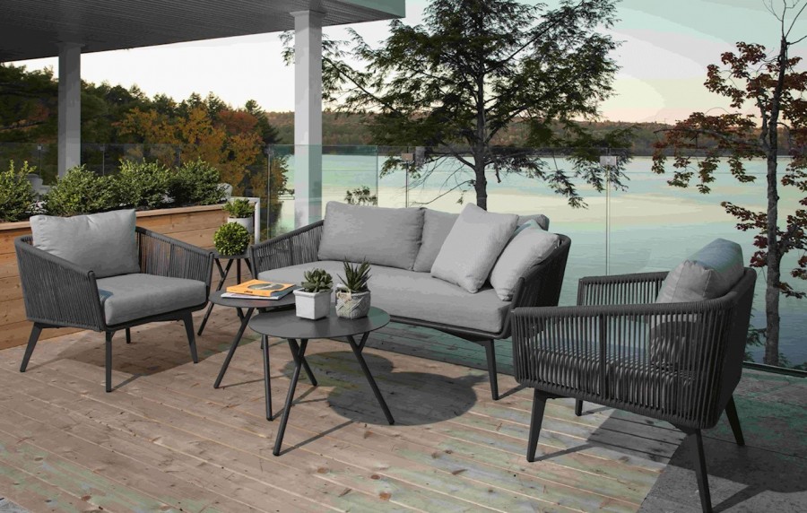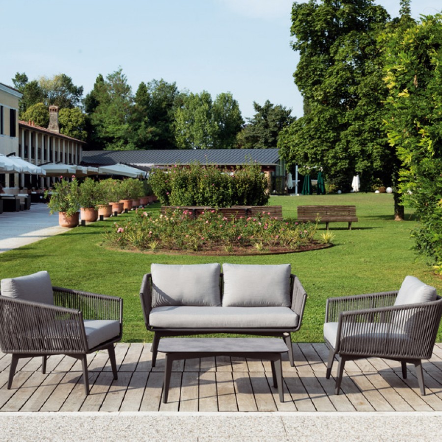 Venetian Collection: Collection of One Seater, Two Seater and Three Seater Sofas and Matching Cocktail Table/ Aluminium Powder Coated Frame / Shell is Woven Synthetic Ropes / Seat and Back Cushion Are 100% Polyester Fabric, Water Repellent and Removable / Cocktail Table is HPL Laminate Top / Suitable for All Outdoor Lounge Areas Including Hotels, Restaurants, Bar Areas / Matching Bar Stool and Dining Chair Available / Only Available In Fabric Illustrated.