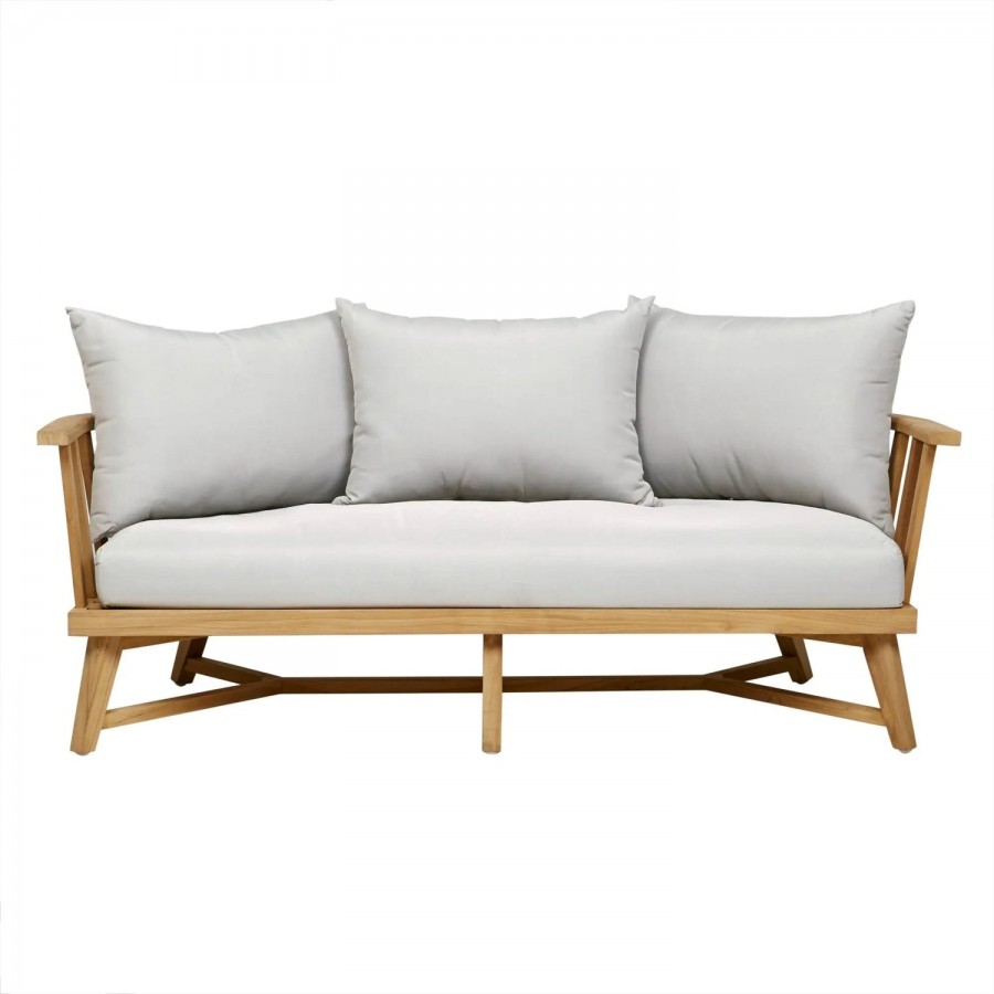 Cove Love Seat / Generous seating proportions / Solid hand crafted premium, sustainable real teak frame with curved back and integrated arms with vertical struts / All year round outdoor use / Braced on floor for added detail and strength for contract use / Available in weathered teak or natural teak / Removable premium quick dry cushions with quick drying foam specifically engineered to drain water rapidly / One piece seat cushion and three back cushions / Cushions available in a wide variety of performance outdoor fabric colours with fade protection / Cushion zip with resist corrosion properties / Upcharge for outdoor covers / Upcharge for additional scatter cushions / Ideal for all high-end outdoor lounge and poolside areas for hotels and restaurants, country clubs, beach clubs and retail.