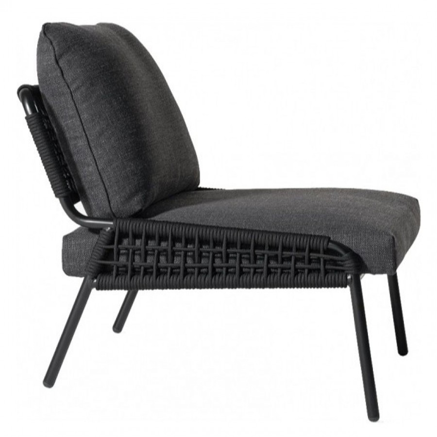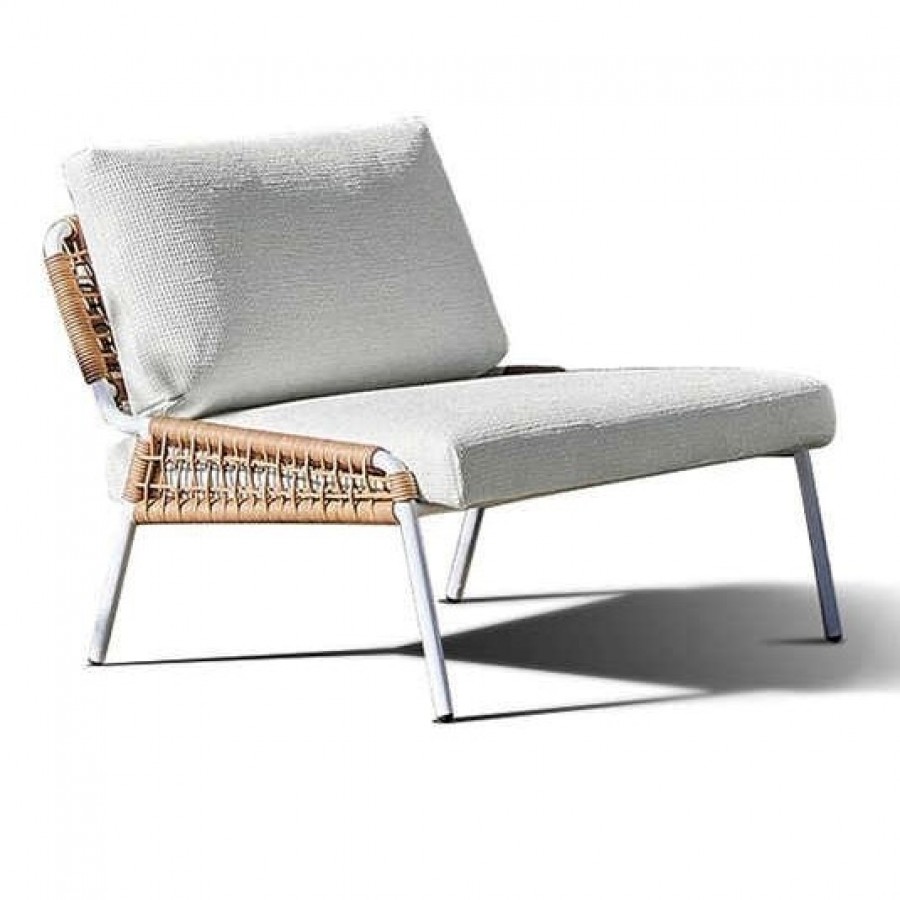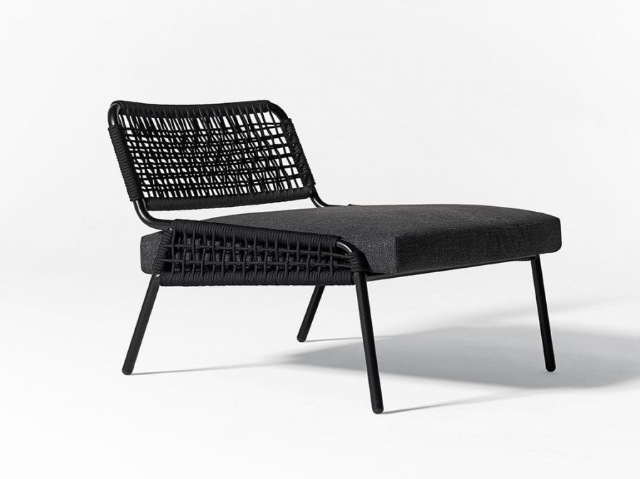Edgewater Open Lounge Chair / Round tubular fully welded aluminum frame in a choice of painted colour finishes / On nylon glides / Removable seat cushion in a wide choice of outdoor fabrics available / Upcharge for additional back scatter cushion for added comfort / Ropes on back and sides for added detail in a wide choice of colour finishes / Extremely comfortable / High quality cushions with quick dry foam / Ideal for all outdoor lounge areas and hotel balconies.