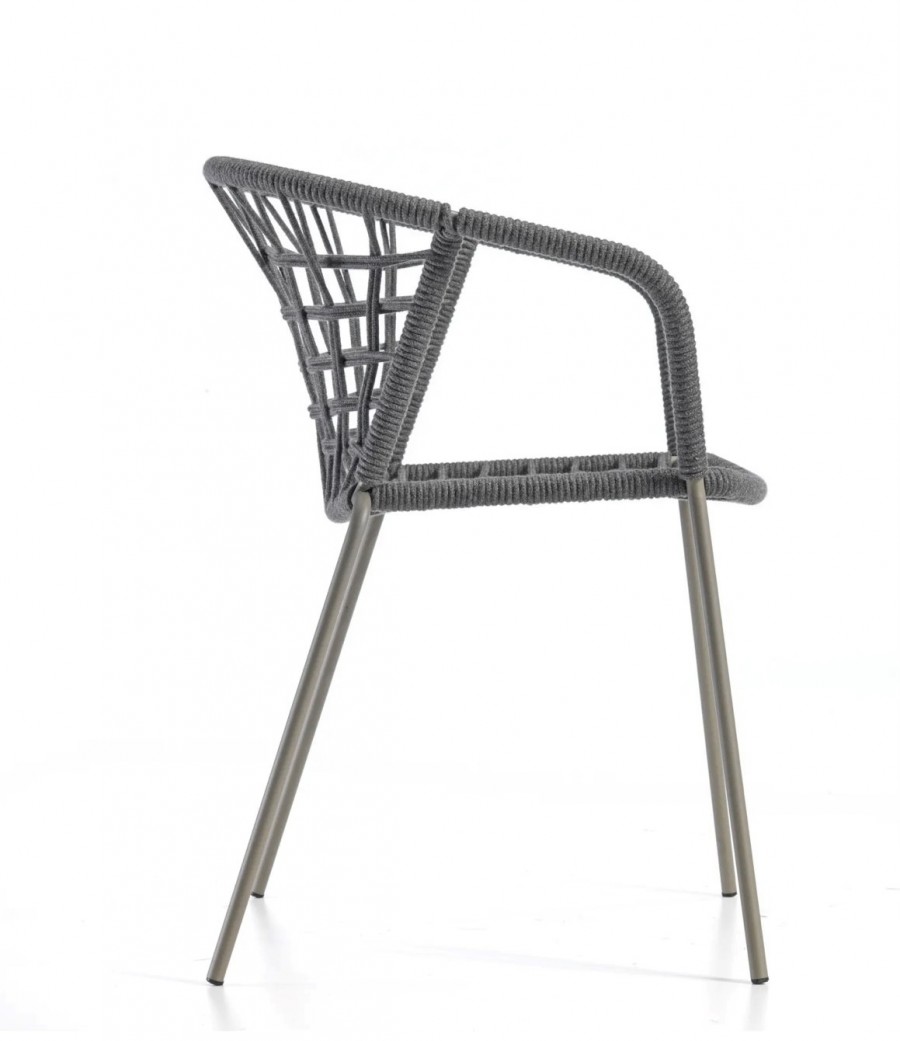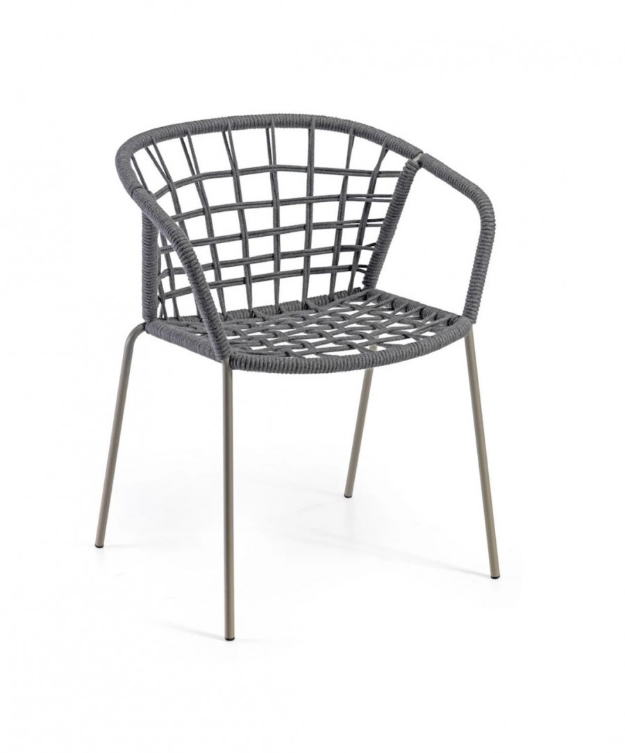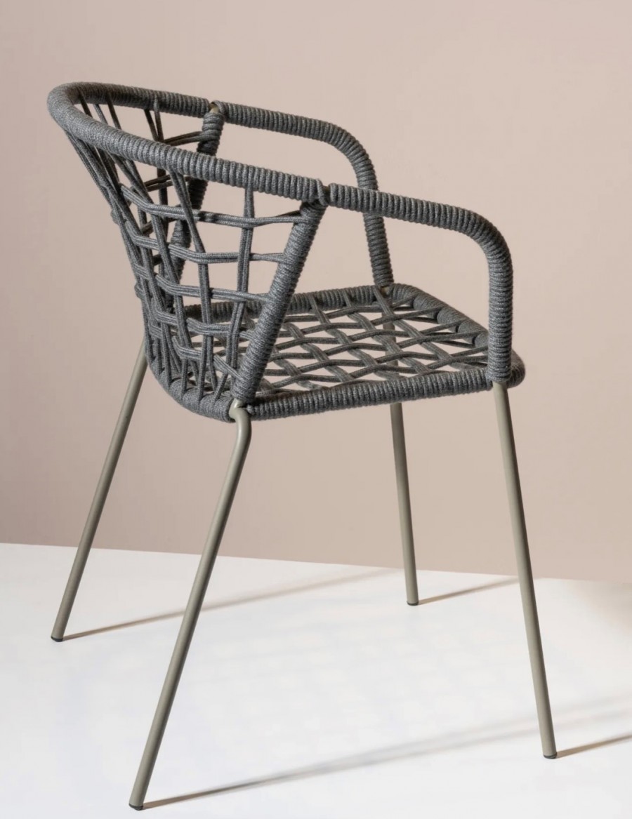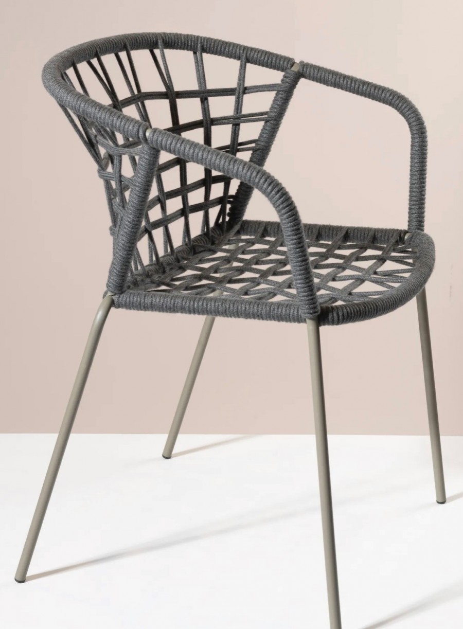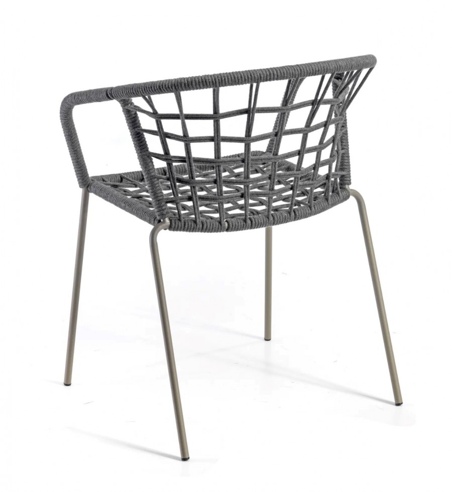 Epcot Rope Armchair / Metal and Rope Outdoor Armchair / Integrated arms / Steel Tubular Stacking / Stacked 6-8 High / Generous Seating Proportions / Available in Various Matte Lacquer Painted Finishes and Rope Colour Finishes / Suitable For All Outdoor Dining, Hospitality and Commercial Settings.