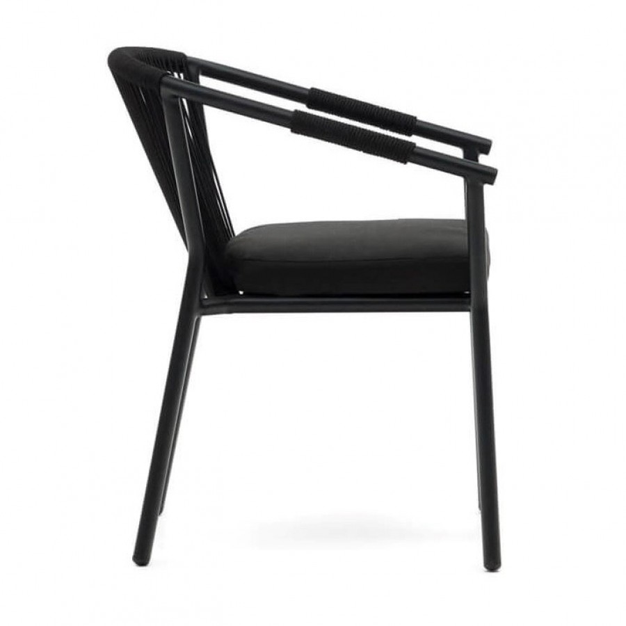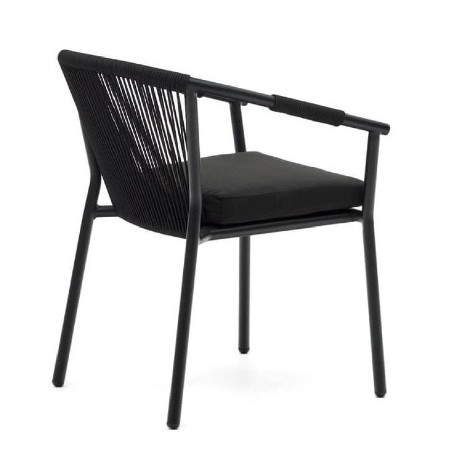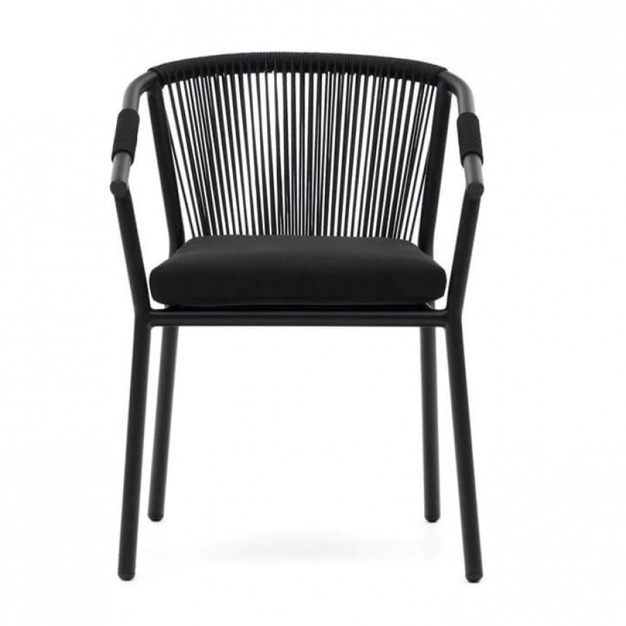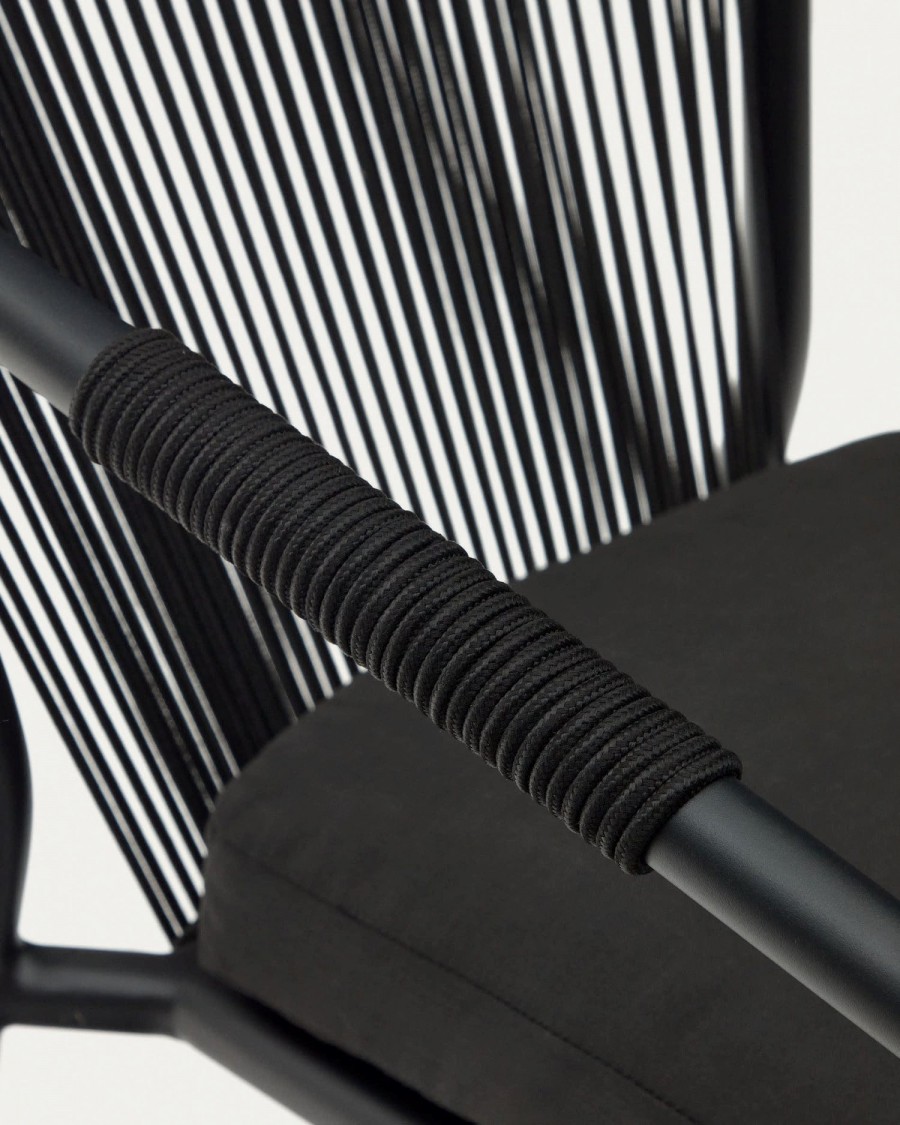 Flagler Armchair / Generous seating proportions / Aluminum round fully welded tubular frame for heavy contract use with wrap around ropes to back and armrests in various colour finishes / All year round outdoor use / On nylon glides / Removable premium quick dry seat cushion with quick drying foam specifically engineered to drain water rapidly / Cushion available in a wide variety of performance outdoor fabric colours with fade protection / Cushion zip with resist corrosion properties / Upcharge for outdoor covers / Ideal for all high-end outdoor dining areas for hotels and restaurants, country clubs and retail.