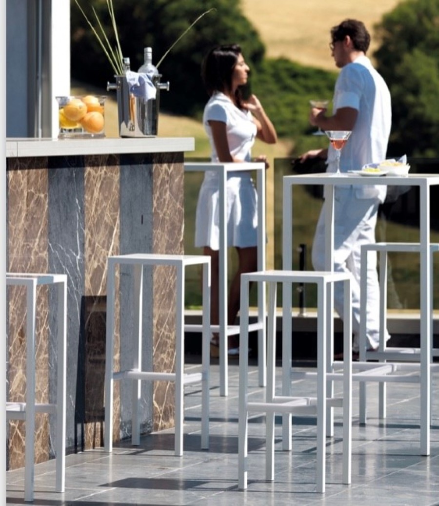 Sold As A Set of 4 Stools and Bar Height Table / Metal Powder Coated Treated For Salt and High Humidity Environments / Available In A Wide Choice Of Painted Finishes / For Heavy Contract and Outdoor Use / Stools Are Braced With Integrated Foot Rest / Table Braced All Round / Ideal For All Outdoor Poolside, Restaurants And Bar Areas