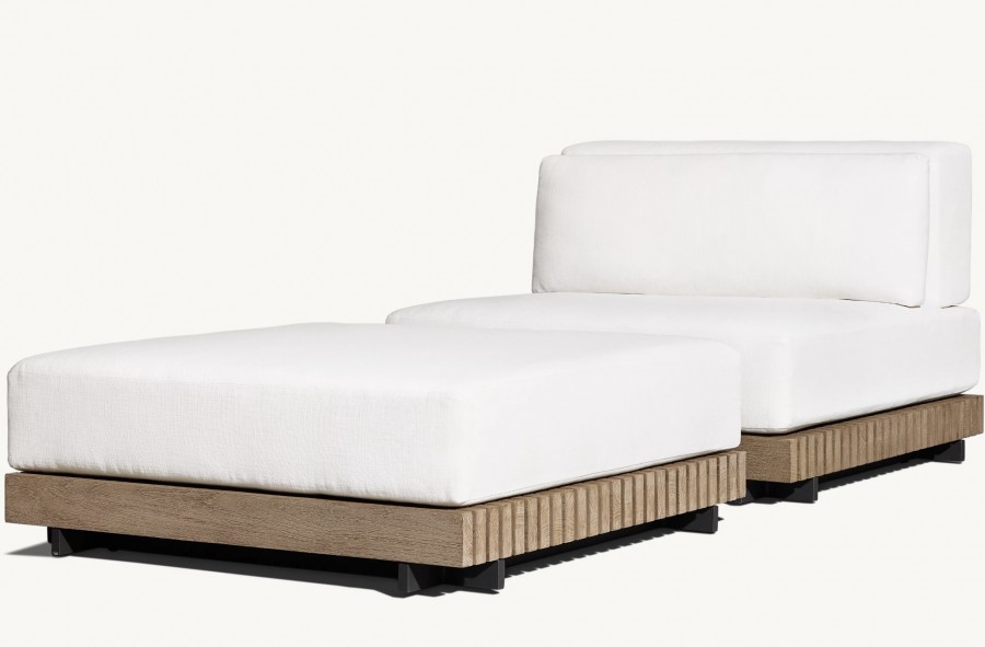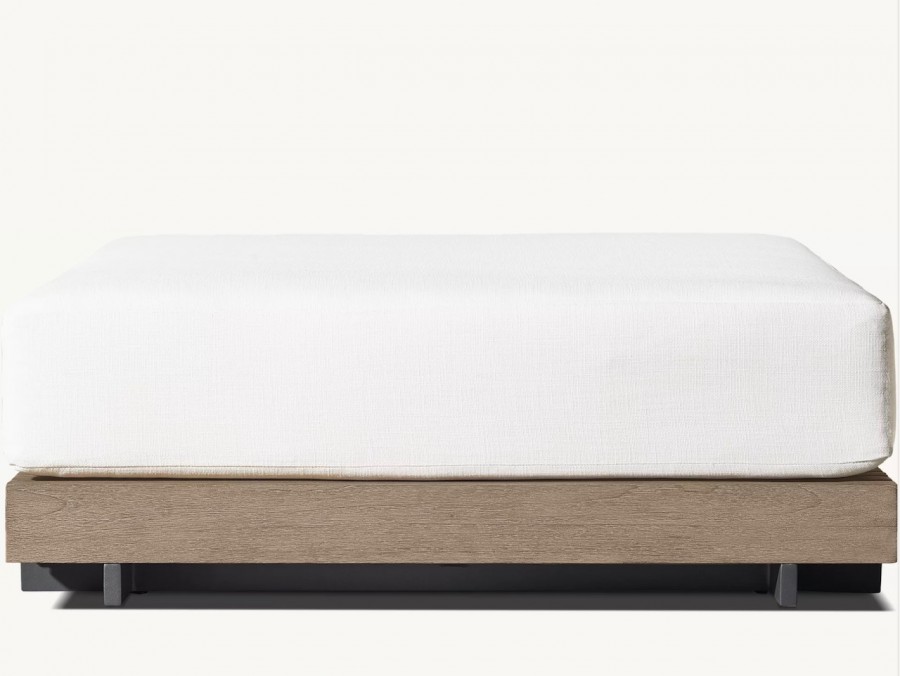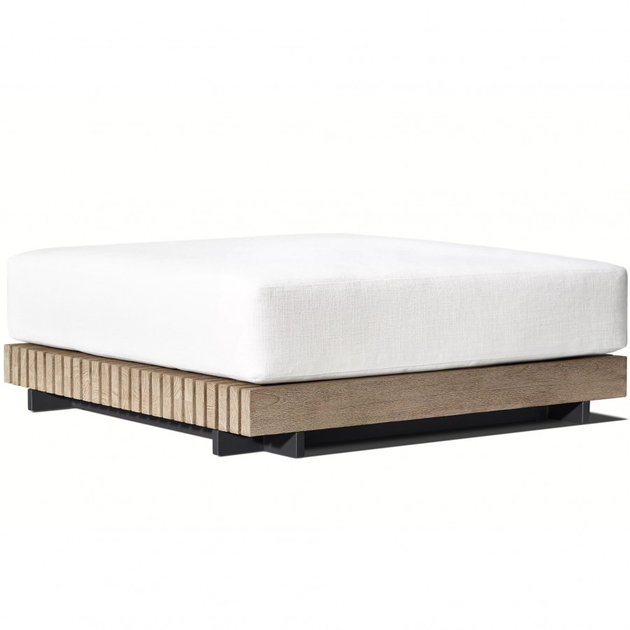 Joia Footstool / Modular system also consists of straight, left hand/right hand arm/corner units / Generous seating proportions / Solid hand crafted premium, sustainable real teak slatted base for all year round outdoor use / Available in weathered teak or natural teak / Raised glides to protect from weather elements all year round / Removable premium quick dry cushion with quick drying foam specifically engineered to drain water rapidly / Cushion available in a wide variety of performance outdoor fabric colours with fade protection / Can be configured to suit individual customers needs / Matching cocktail table available / Cushion zip with resist corrosion properties / Upcharge for outdoor covers / Ideal for all high-end outdoor lounge areas, hotels and restaurants.