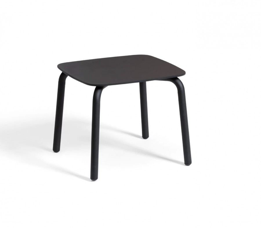 Juno Side Table / Powder coated aluminum base black only / HPL laminate top in black only / Ideal for all outdoor lounge areas.