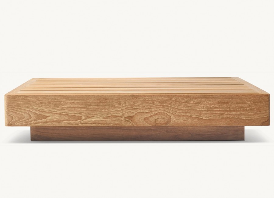 Lucia Cocktail Table / Available in three sizes / Handcrafted, sustainable harvested premium solid teak / Slatted effect wedge top for added detail and inset plinth base / Weather resistant teak ideal for all year outdoor use / Available in natural or weathered teak / To be used in conjunction with other Lucia products / Upcharge for heavy duty outdoor covers for all models / Ideal for all outdoor bar areas, hotels, restaurants, beach clubs, spas, and country clubs.