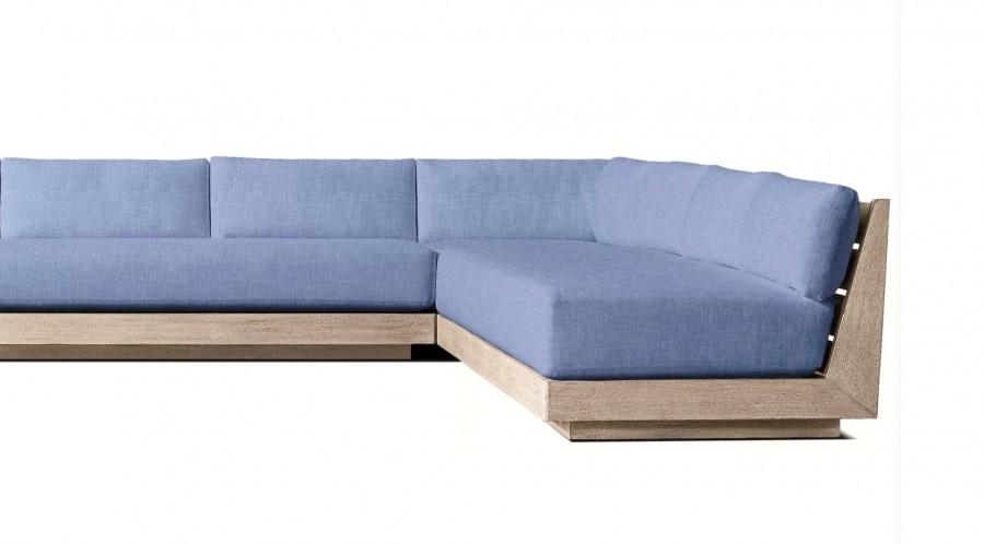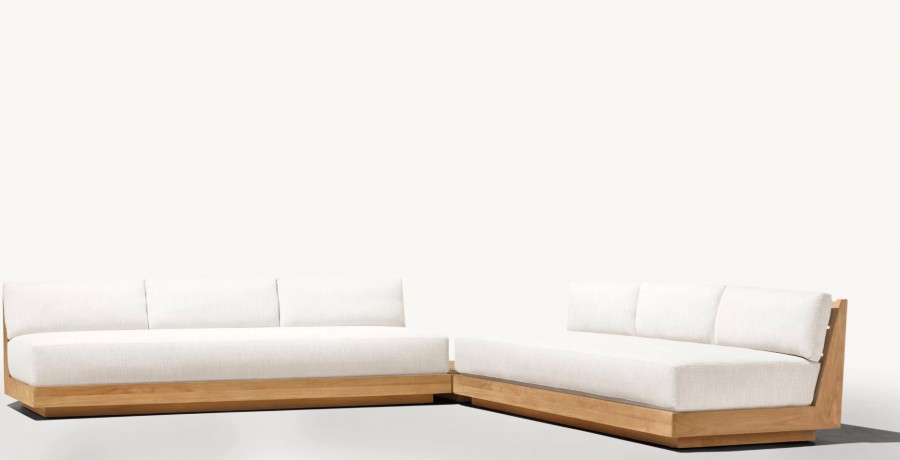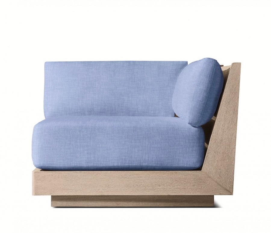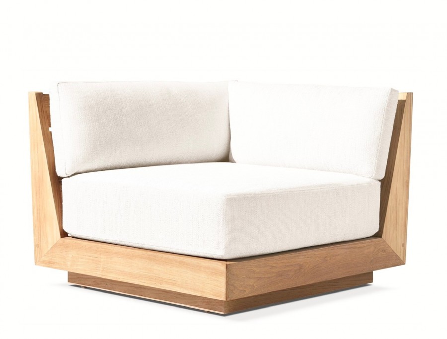 Lucia Modular Corner Unit / Handcrafted, sustainable harvested premium solid teak / Slatted wedge seat back and inset plinth base / Weather resistant teak ideal for all year outdoor use / Available in natural or weathered teak / Premium quick-dry cushions are engineered with an open-cell reticulated foam core and mesh bottom panel, allowing water to drain rapidly and air to circulate freely / Well padded removable seat and back cushions for added comfort / Cushions available in a wide choice of colors / Cushions have easy-care fibres that resist stains, spills, fading and mildew / Corrosion resist zips / Upcharge for heavy duty outdoor covers for all models / Modular system can be configured to your individual requirements / Ideal for all outdoor lounge areas, hotels, beach clubs, spas, and country clubs.