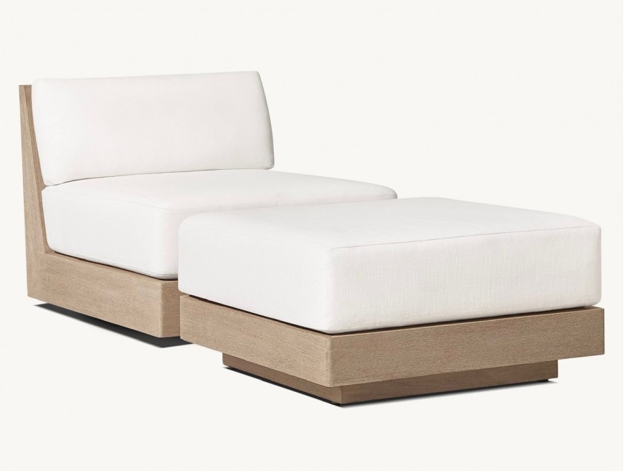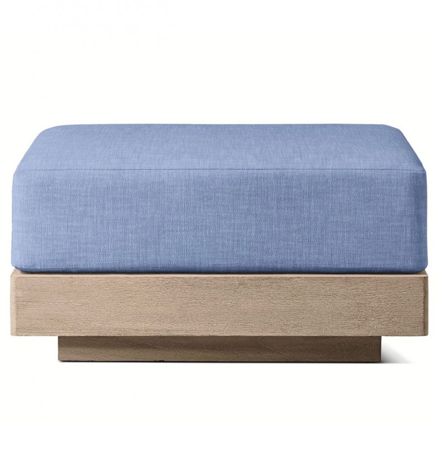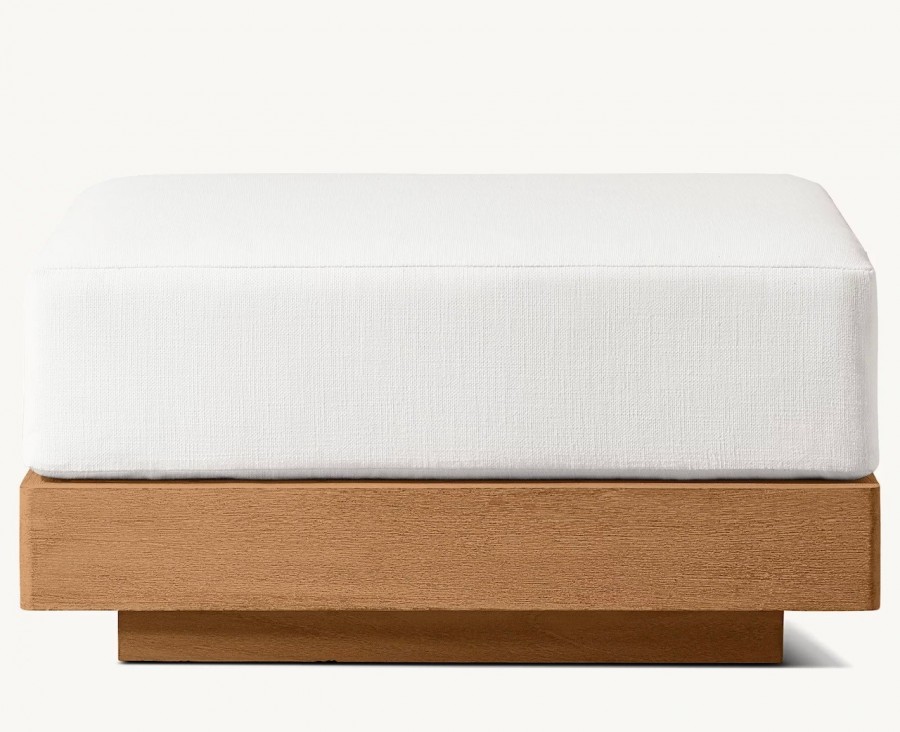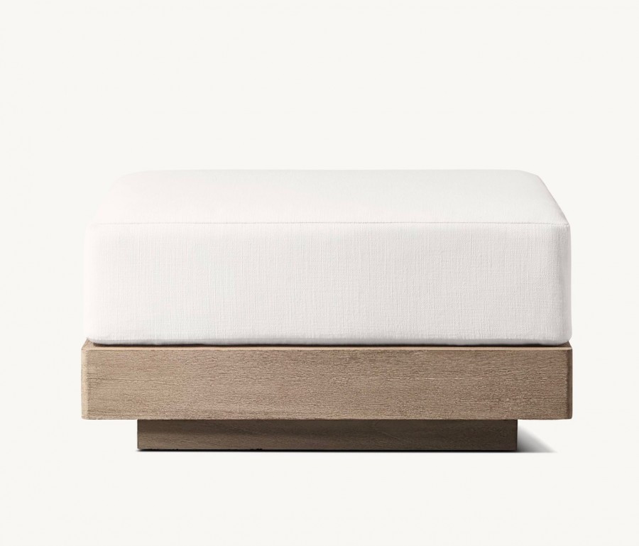 Lucia Modular Footstool / Handcrafted, sustainable harvested premium solid teak / Slatted wedge inset plinth base / Weather resistant teak ideal for all year outdoor use / Available in natural or weathered teak / Premium quick-dry cushion engineered with open-cell reticulated foam core and mesh bottom panel, allowing water to drain rapidly and air to circulate freely / Well padded removable seat cushion for added comfort / Cushion available in a wide choice of colors / Cushion has easy-care fibres that resist stains, spills, fading and mildew / Corrosion resist zip / Upcharge for heavy duty outdoor covers for all models / Modular system can be configured to your individual requirements / Ideal for all outdoor lounge areas, hotels, beach clubs, spas, and country clubs.