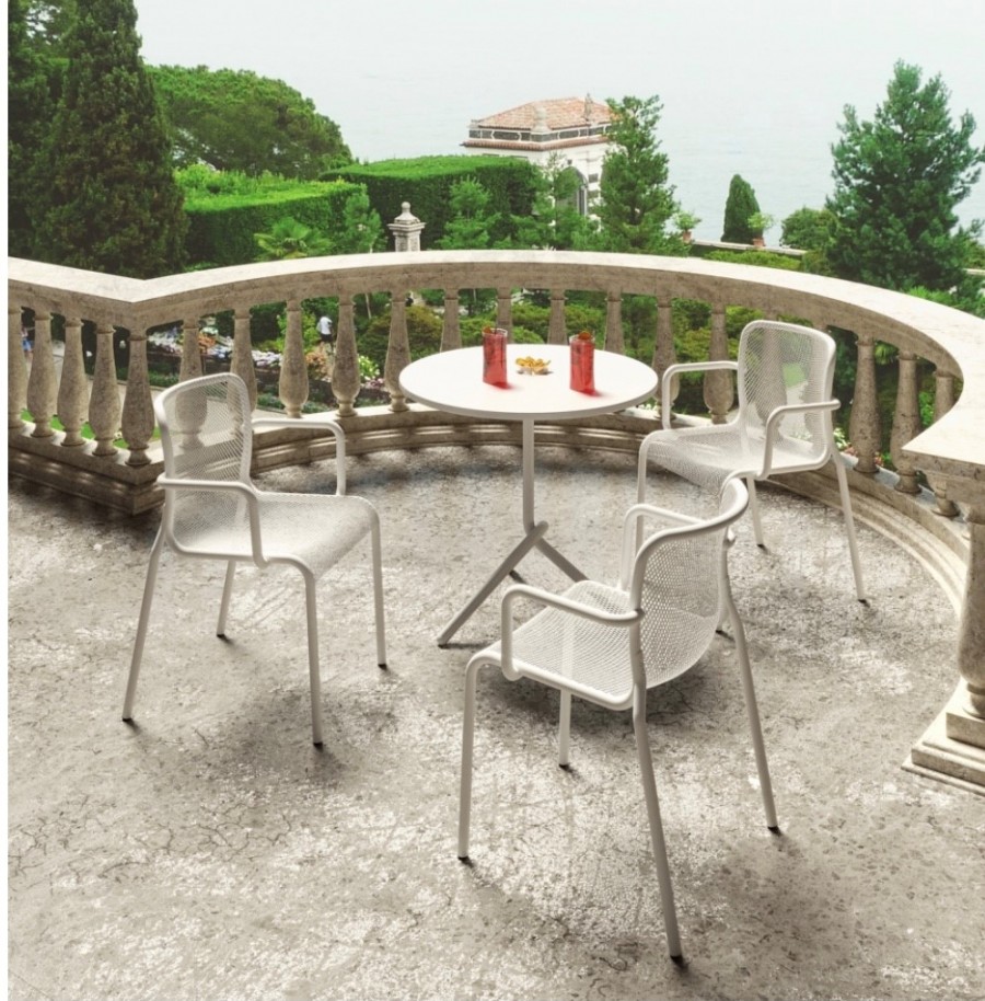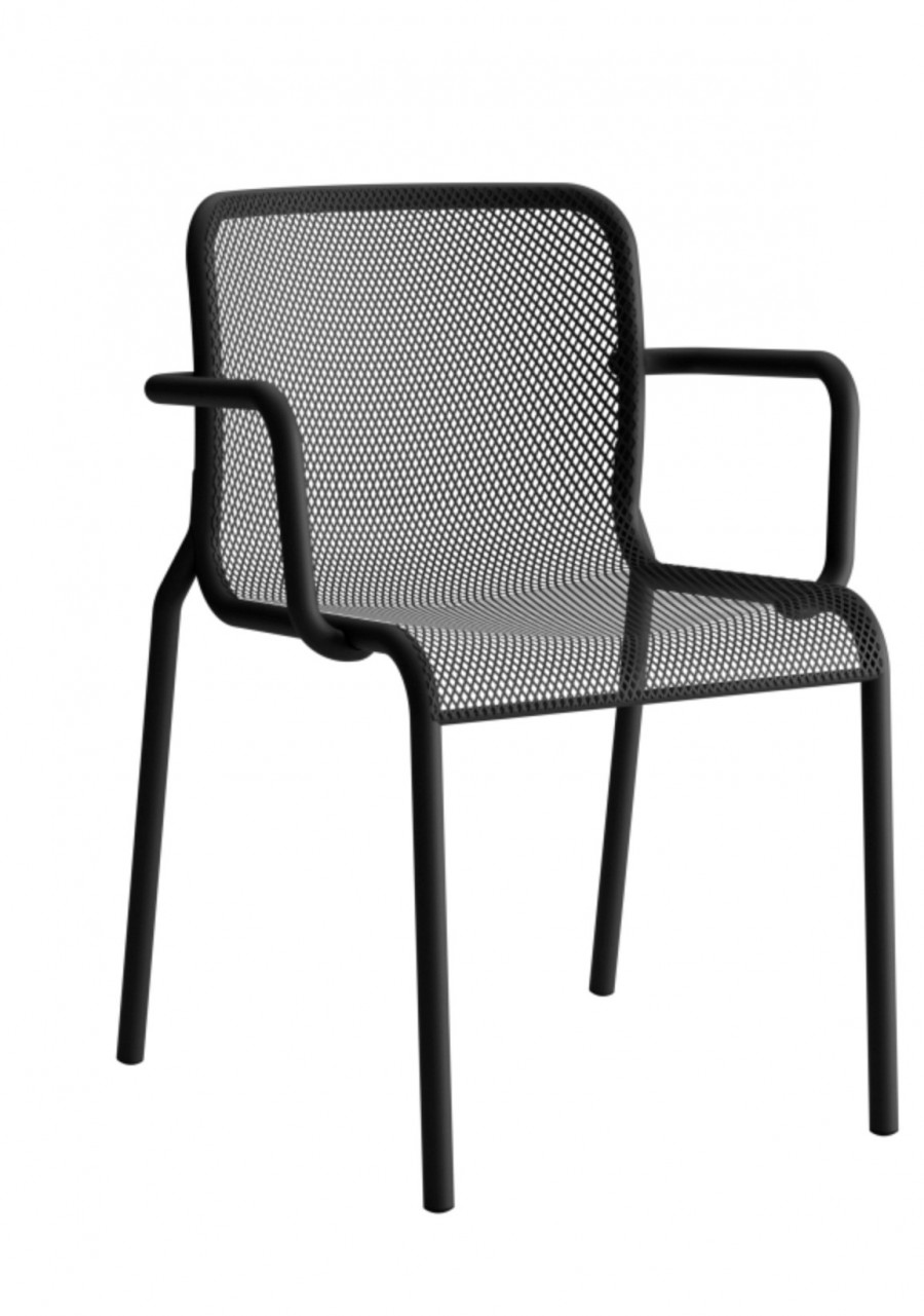 Malibu Arm Chair, Metal Round Tubular Frame, On Nylon Glides / Perforated Metal Mesh Shell / Robust Ideal For Heavy Contract Use / Various Outdoor Painted Finishes / Ideal For All Outdoor Use And Weather Environments