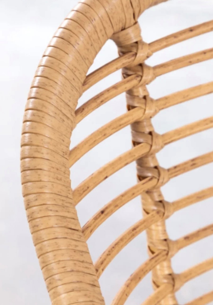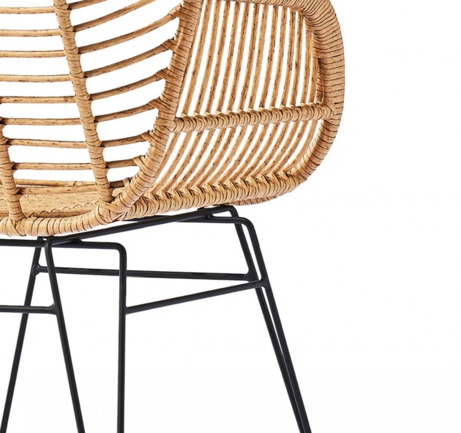 Rosetta Armchair / Suitable for outdoor use and indoor use / Metal rodded frame / Fully welded / Powder coated in black / Stretcher rods on frame for added strength and detail / Poly rattan natural hand woven shell / Upcharge for removable seat cushion for added comfort in a choice of colours (suitable for outdoor use) / Not stackable / Generous seating proportions / Ideal for all dining applications including coffee shops / restaurants and hotels.