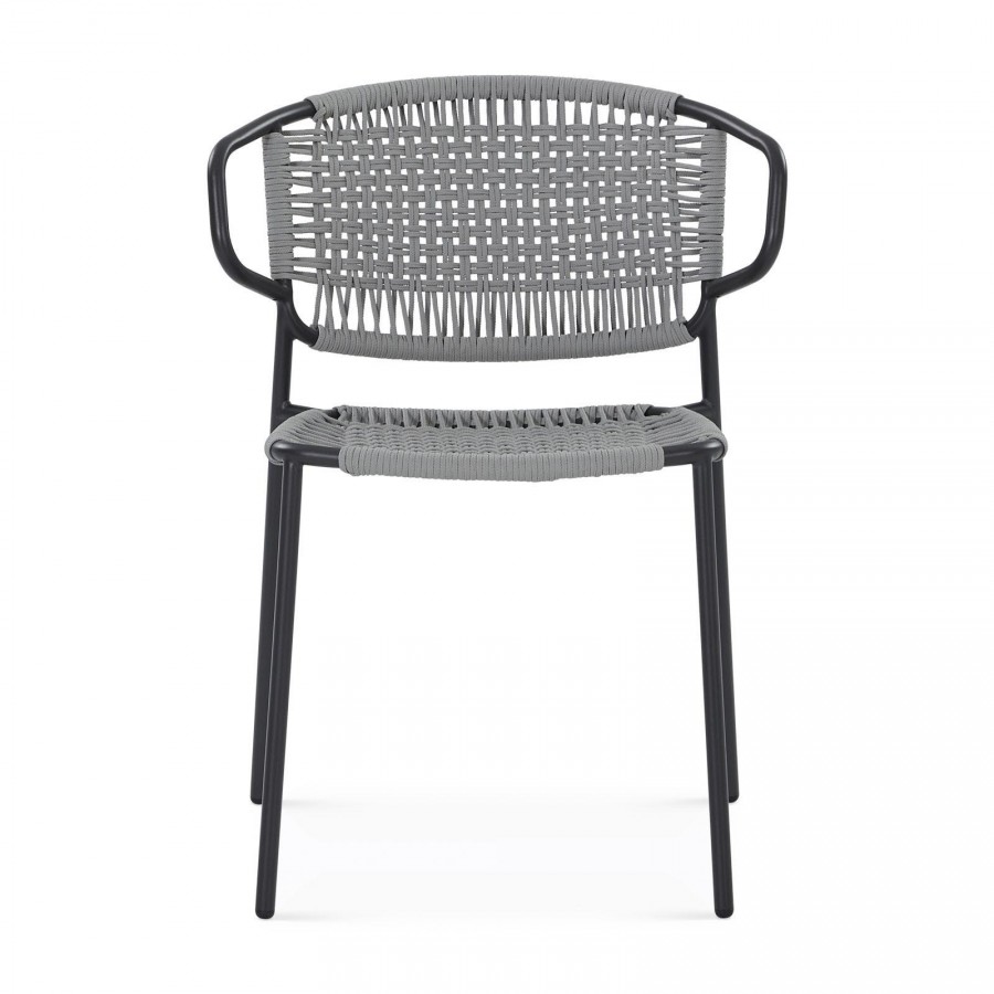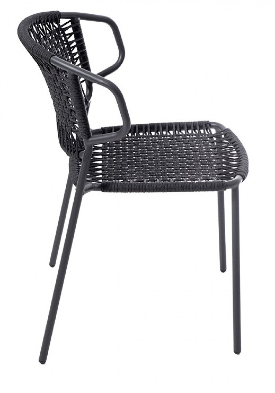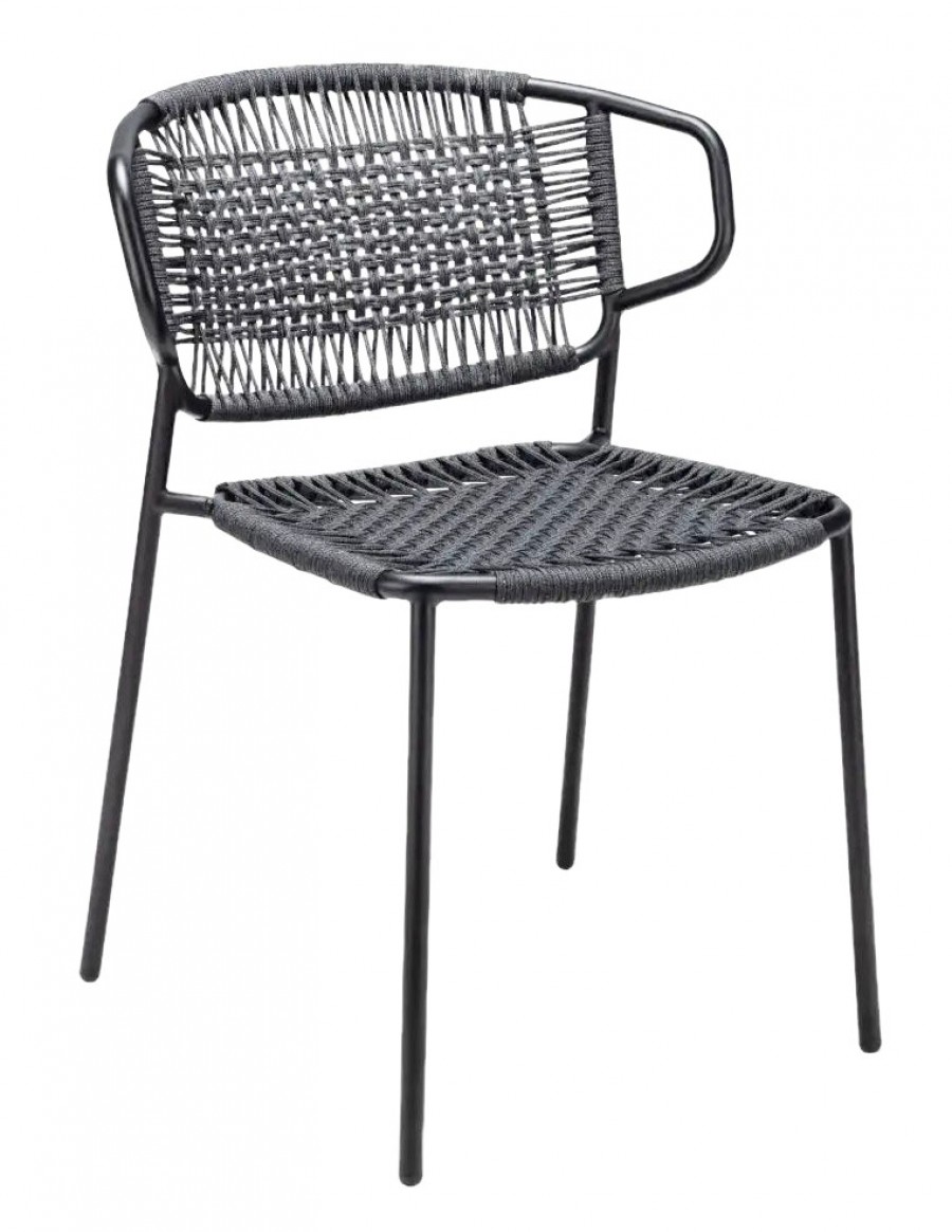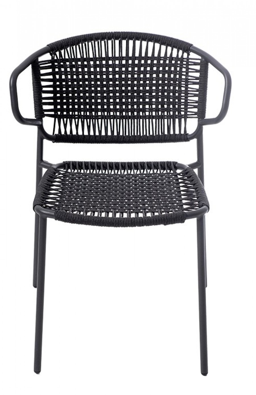 Soto Outdoor Chair / Aluminum round tubular frame / Fully welded for heavy contract use / Light weight for easy manoeuvrability / Choice of for colour options / Seat and back with interwoven hand finished rope design / Curved back for added comfort / Generous seating proportions / Stackable 4-6 high on floor / Ideal for all year round outdoor use / On nylon glides / Cost effective option for projects / Ideal for all outdoor dining areas for hotels, restaurants, beach clubs and hotel balconies.