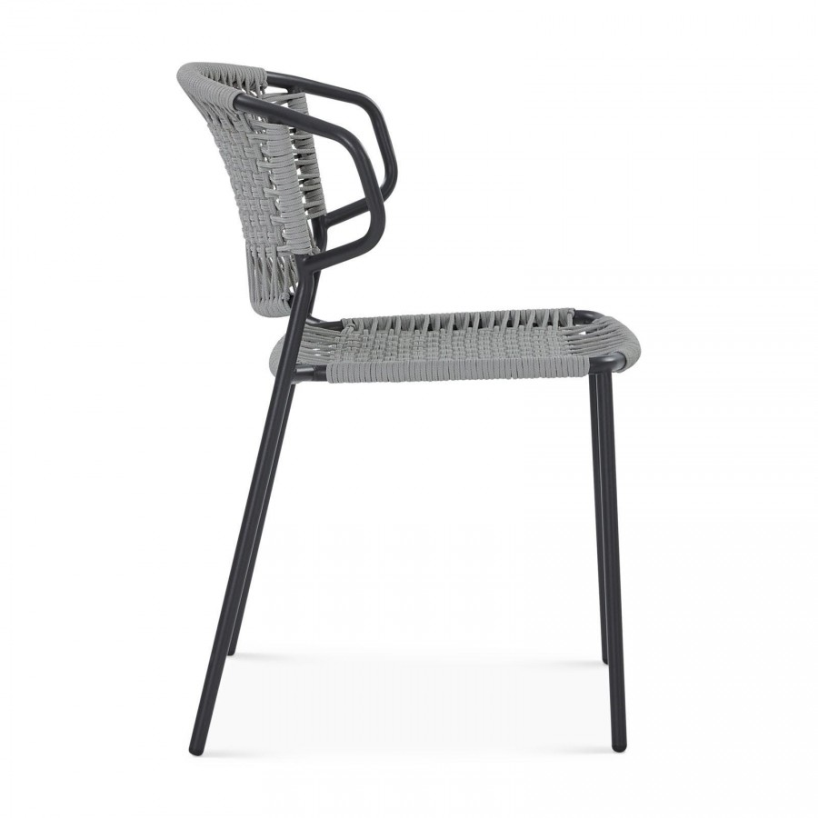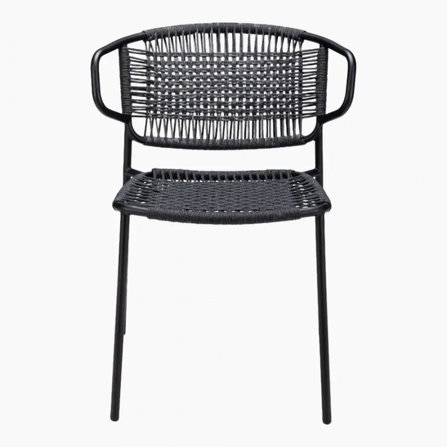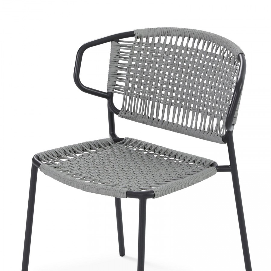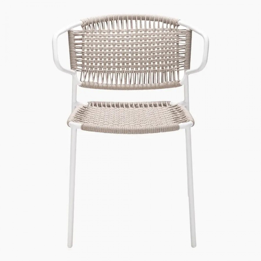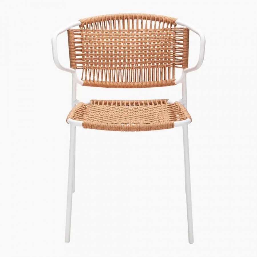 Soto Outdoor Chair / Aluminum round tubular frame / Fully welded for heavy contract use / Light weight for easy manoeuvrability / Choice of for colour options / Seat and back with interwoven hand finished rope design / Curved back for added comfort / Generous seating proportions / Stackable 4-6 high on floor / Ideal for all year round outdoor use / On nylon glides / Cost effective option for projects / Ideal for all outdoor dining areas for hotels, restaurants, beach clubs and hotel balconies.