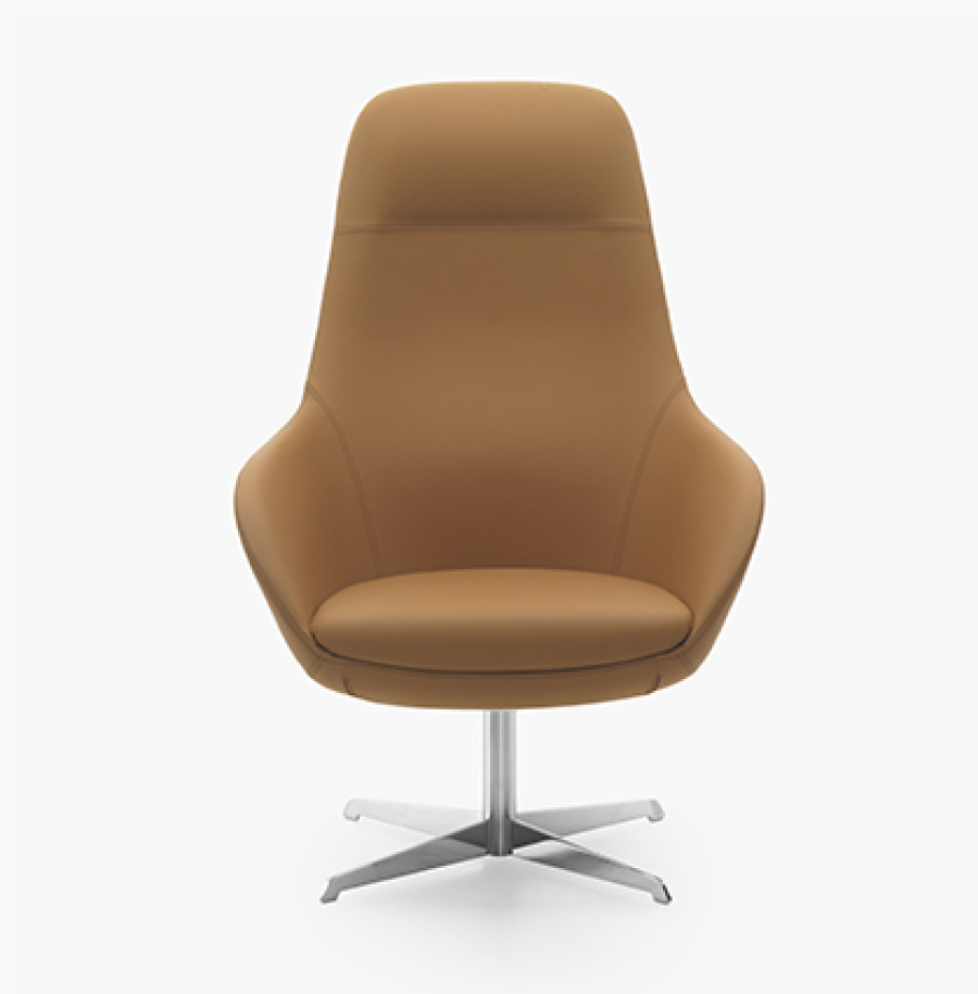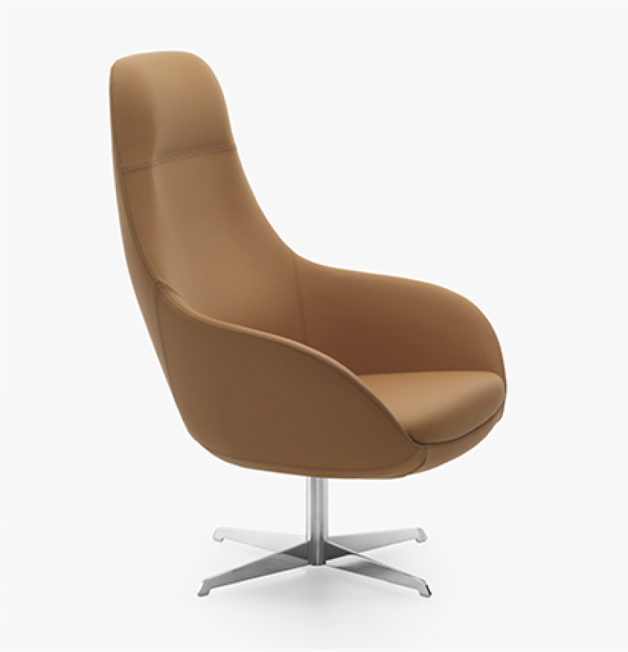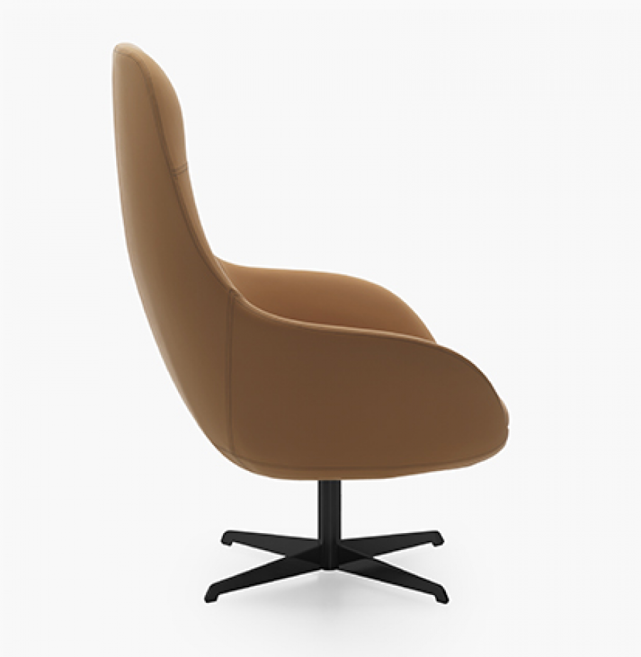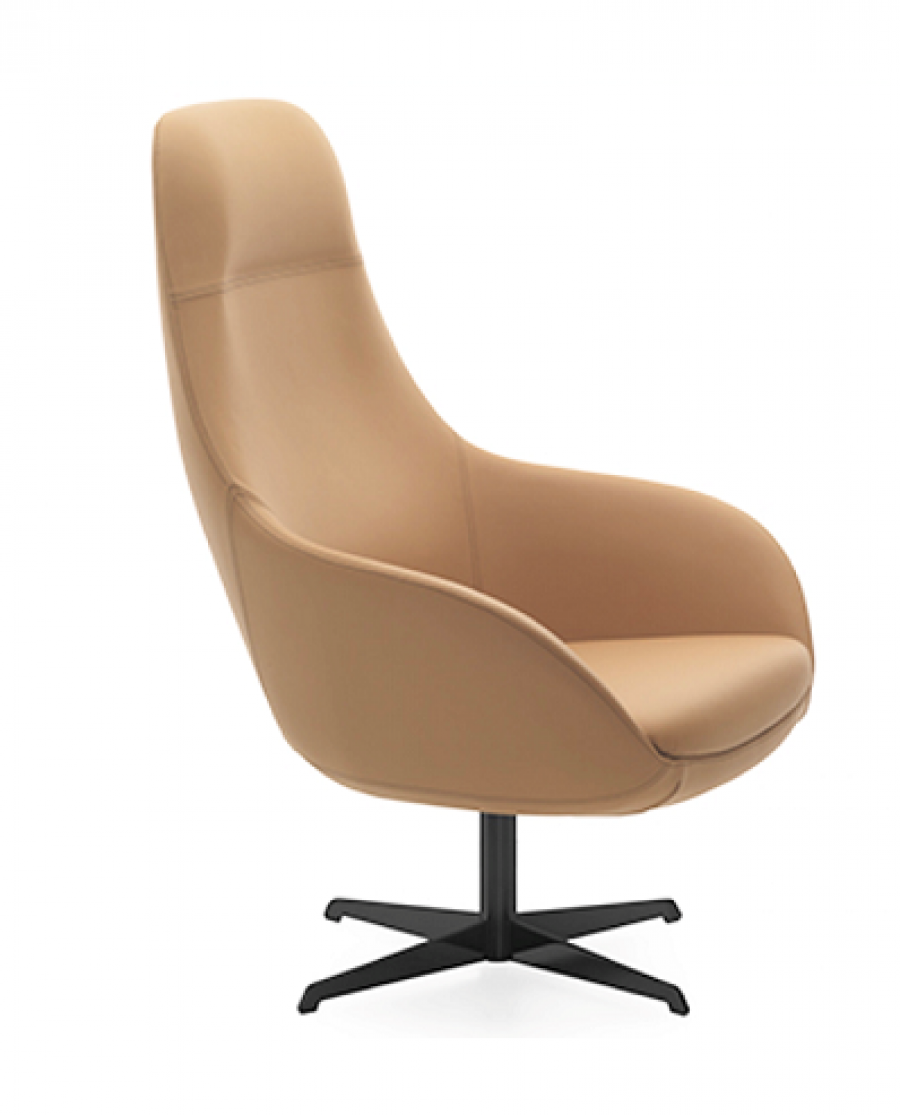 Senza 4 Star Lounge Chair / Metal Polished Chrome or Black Painted 4 Star Base / Smooth Integrated Arms & Back / Swivel / Offers Exceptional Comfort / Molded Polyurethane Shell / Fully Upholstered from Group 3 Upwards / Available in a Wide Choice of Fabrics & Premium Leathers / Upcharge Two Tone Upholstery / Ideal For all Reception / Lobby Areas / Private Airport Lounge Areas & Cocktail Bars & High End Apartments
