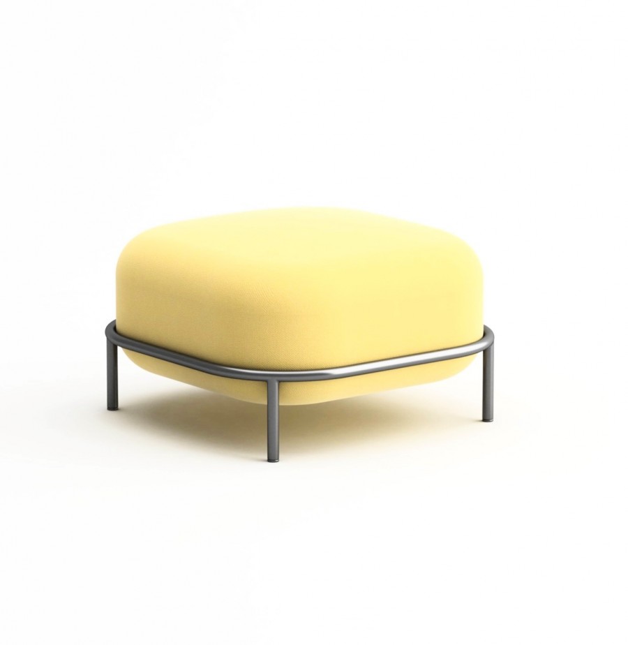 Skyline Collection: Part of A Wide Range Of Products / Pouffe / Available in Fabric Or Vinyl / Upholstered In A Wide Choice Of Colour Options / Well Padded Seat and Generous Seating Proportions / For Heavy Contract Use / On Nylon Glides / Painted finish in black and white standard / Upcharge for additional painted finishes and polished chrome and brass / Upcharge For Work Table With Built in Phone Charger / Ideal For All Work Collaboration Areas, Hotels, Private Airport Lounge Areas and Educational Use.
