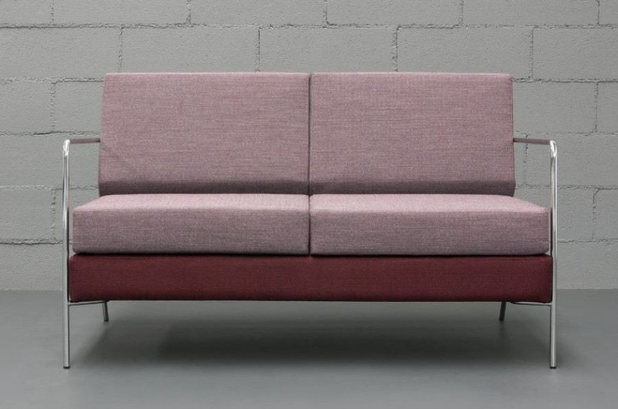 Zara Two Seater Sofa / Round Metal Tubular Frame With Integrated Arms / Polished Chrome Finish Standard / Black Or White Finish Non Cost Option / Upcharge Brass And Copper Finish / Timber Frame Construction / Well Padded Seat And Back Offers Exceptional Comfort / Generous Seating Proportions / Fully Upholstered / Available in a Wide Choice of Fabrics & Premium Leathers / Upcharge Two Tone Upholstery / Ideal For all Receptions, Lobby Areas, Private Airport Lounge Areas, Cocktail Bars And High End Apartments