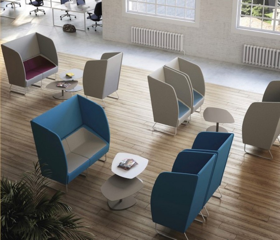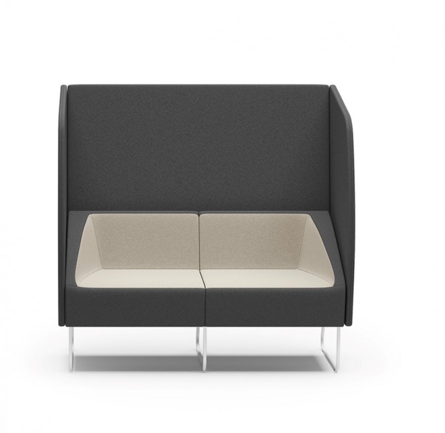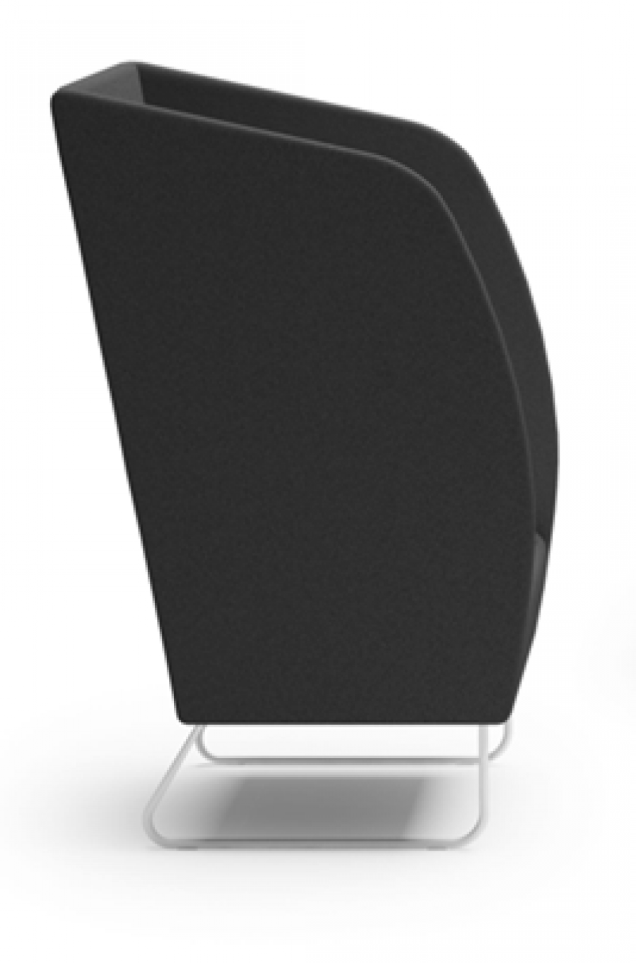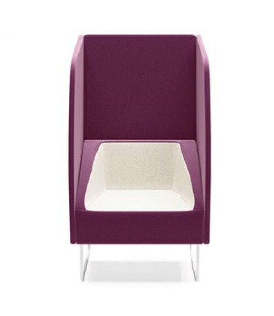 Zumbro High Back available in one seater lounge chair or two seater loveseat / Steel Polished Chrome Sled Frame Only / On Glides / Moulded Polyurethane Shell / Fully Upholstered / Upcharge Two Tone Upholstery / Well Proportioned Seat / Well Padded Sprung Seat / Fully Upholstered Plywood Sides And Back / Acoustic Sound Proofing Sides And Back / Ideal For Work Place Collaboration Areas, Hotel Lobbies, Waiting Areas and Airport Private Lounge Areas