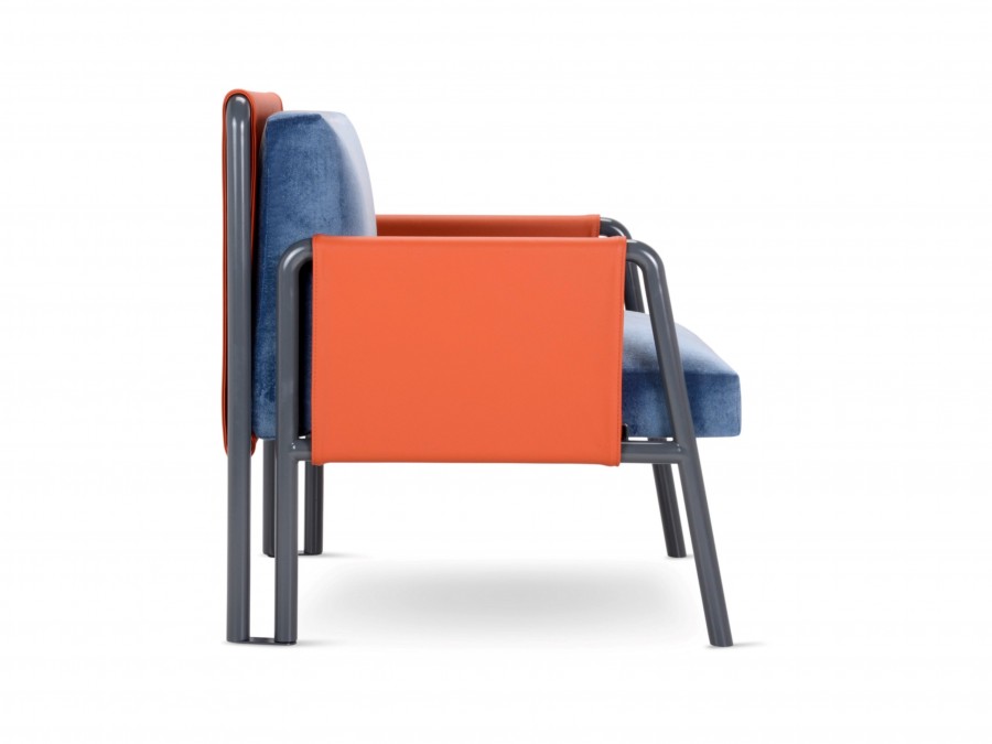 Astoria One seater Lounge / Armchair / Round tube steel construction painted / Black and white standard / Upcharge for additional colour finishes / Fully welded frame for heavy contract use / On nylon glides / Fabric wraps round tubular frame on arms and outer back / Plywood construction seat and back / Well padded / Generous seating proportions / Can be upholstered in fabric vinyl or leather in a wide choice of colours / Upcharge for two-tone upholstery / Ideal for all lobby areas and workplaces.