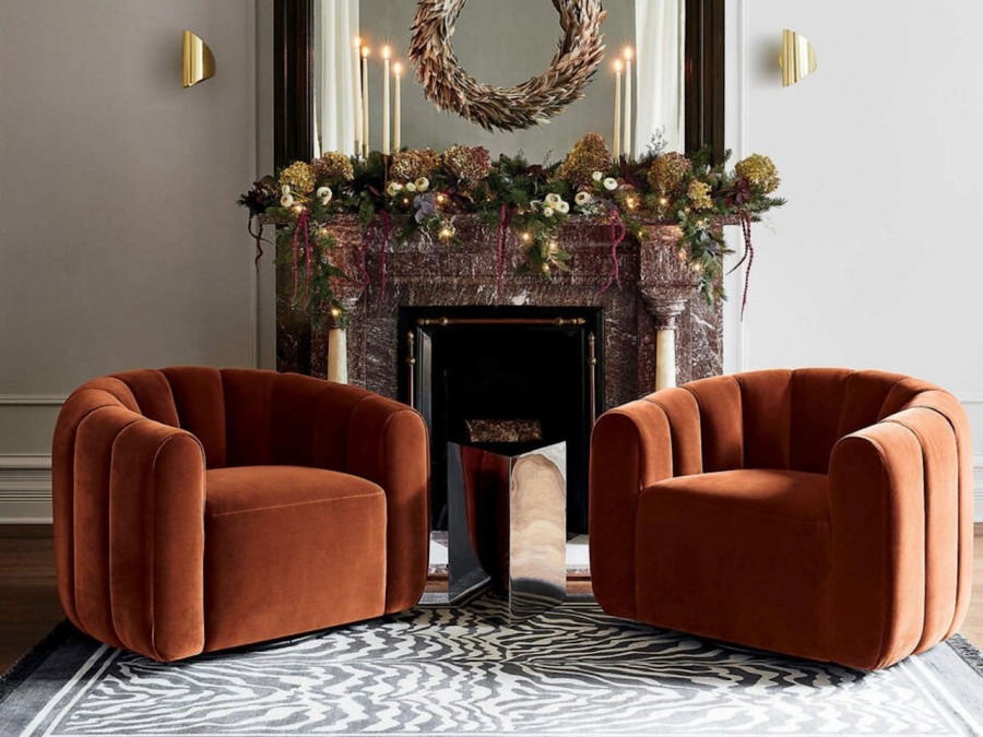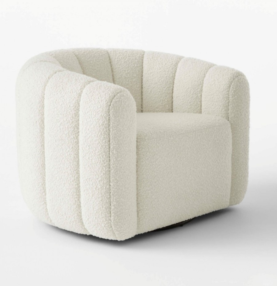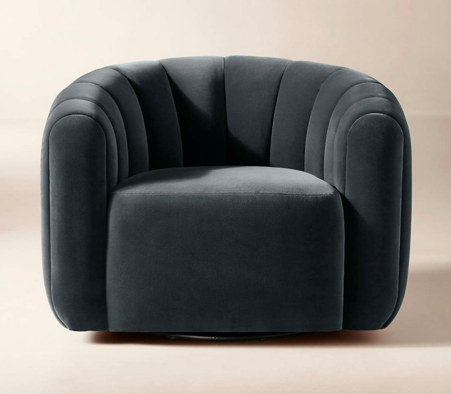 Channelled inner and outer sides and back upholstered for added detail / Fully upholstered / Generous proportions / Solid hardwood frame with well-padded seat / Wide choice of fabric options / Available in two tone upholstery / Well-weighted disc base on floor for swivel motion / Sprung seat / Ideal for all lobby areas and hospitality environments.