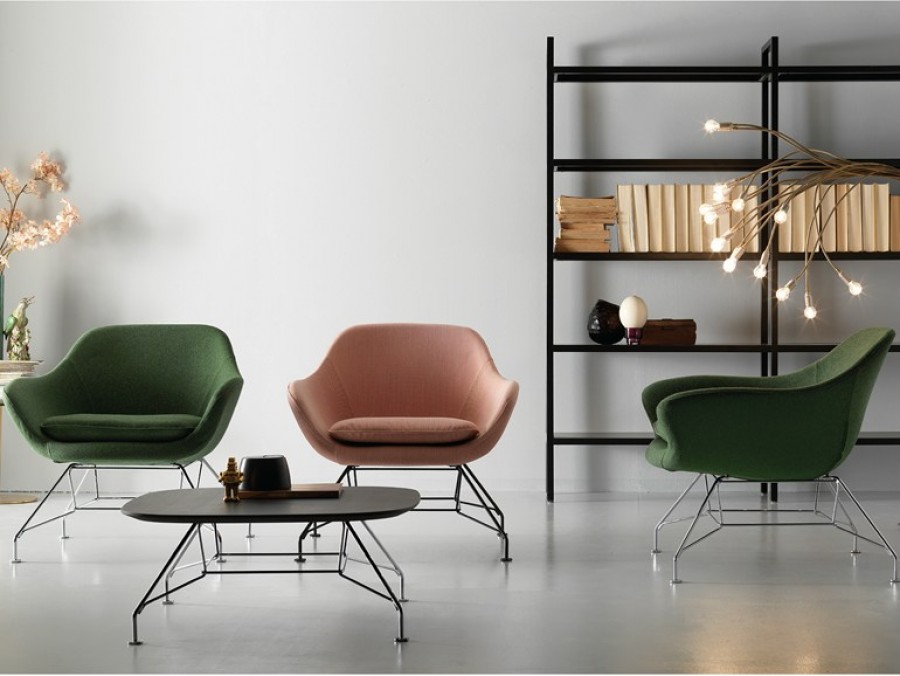 Coco Lounge Chair / Medium Back / Moulded Polyurethane Frame / Loose Seat Cushion / Elegant & Stylish Seat Design / Generous Seat Proportions Offering Excellent Back Support / Contemporary Wire Frame Design Black Painted STD / Upcharge Polished Chrome Frame / Wire Frame Design / Fully Upholstered From Group 3 Upwards / Upcharge For Two Tone Upholstery / Matching Coffee Table Oak Stained Top / Ideal for all Hotel Lounge Areas