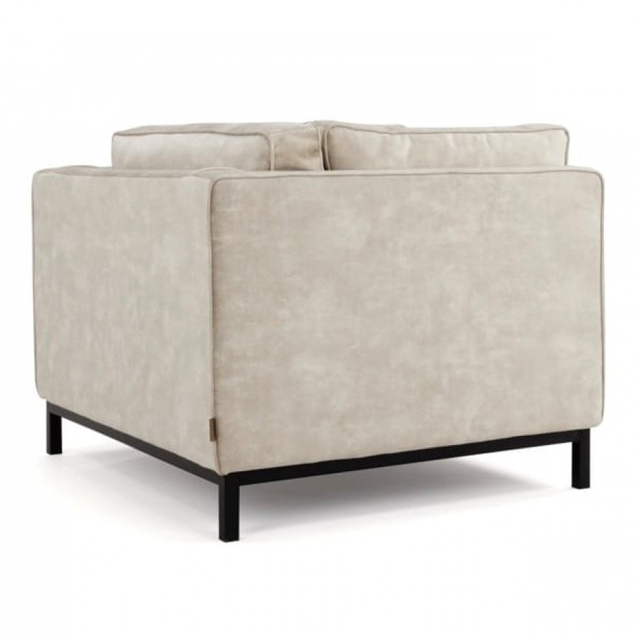 Delaware Armchair / Generous seating proportions / Extremely comfortable for long periods of time / Timber frame construction / Sprung seat / Removable seat and back cushions and side bolster cushions / Metal square tube frame / Integrated legs / Black painted only / All seams with piping for added detail / Can be upholstered in fabric, vinyl or leather / Upcharge for two-tone upholstery / Ideal for all lobby areas, country clubs, casinos and hotels.