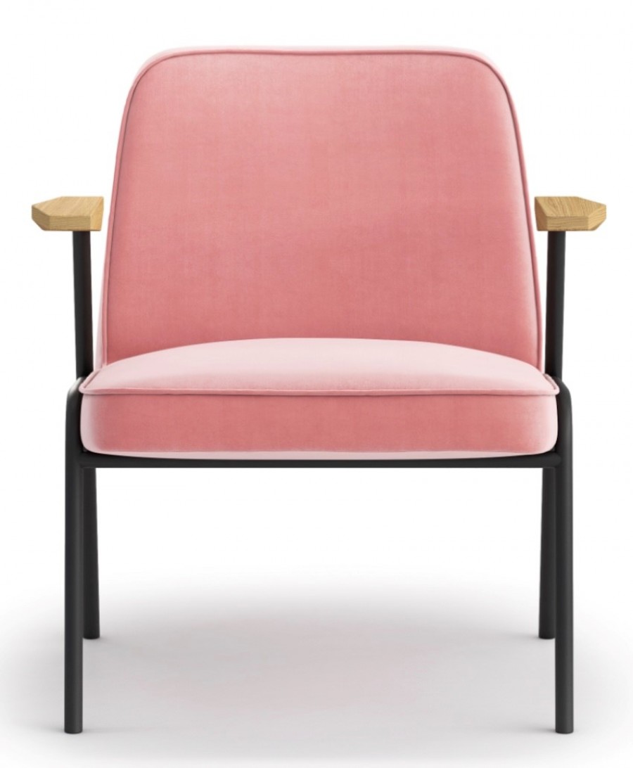 Gordon Lounge Chair / Plywood shell with well padded foam / Fully upholstered / Front seams with piped edge / Round steel tube / Fully welded for heavy contract use / Braced under seat / On nylon glides / Black painted frame standard / Other colour frames available on request / Beech wooden caped arms standard / Upcharge for additional wood stain finishes / Can be upholstered in fabric, vinyl or leather in a wide choice of colour options / Generous seating proportions / Offers excellent back support / Ideal for the workplace / Education / Sports stadiums.