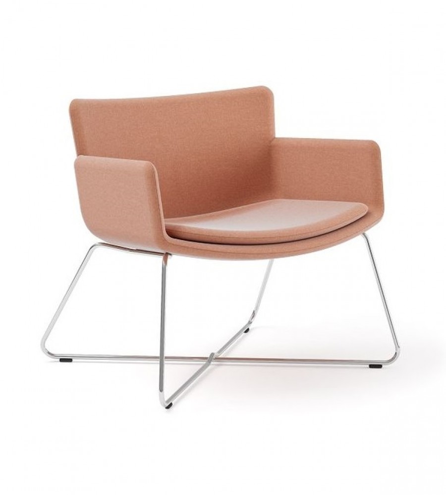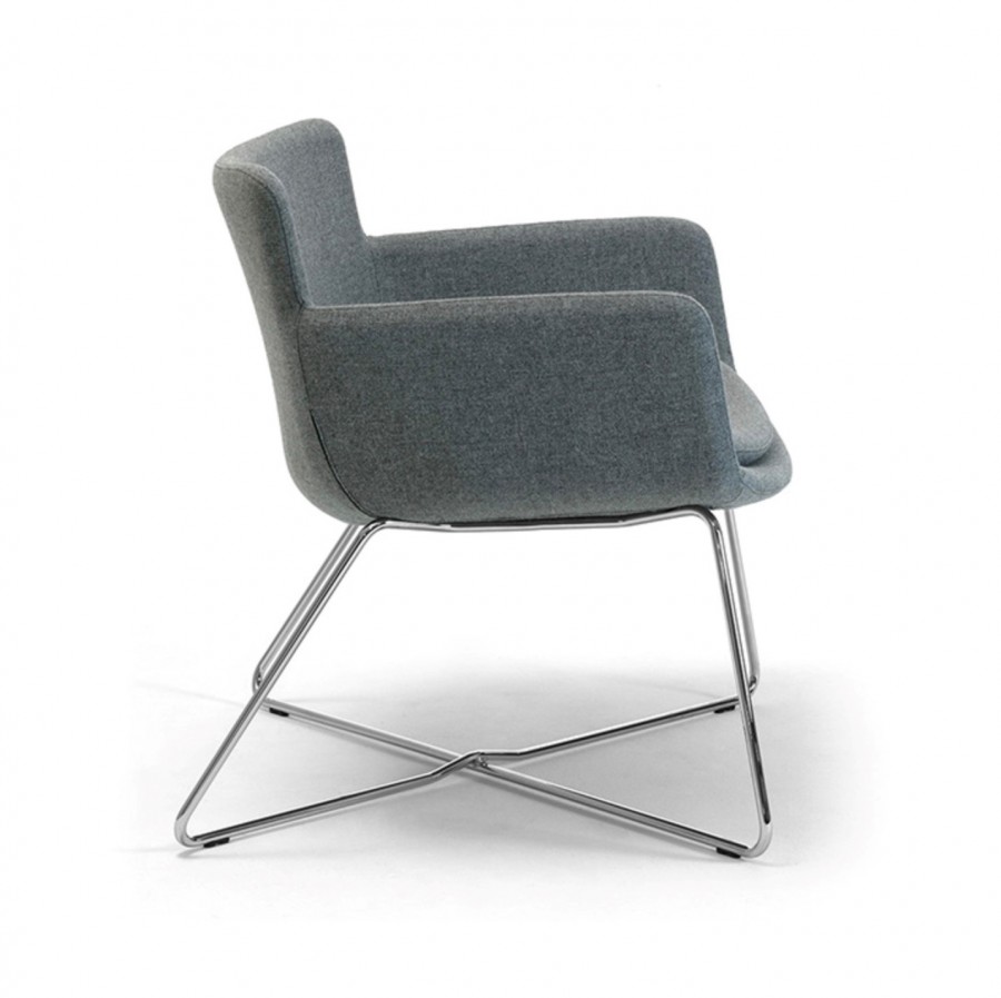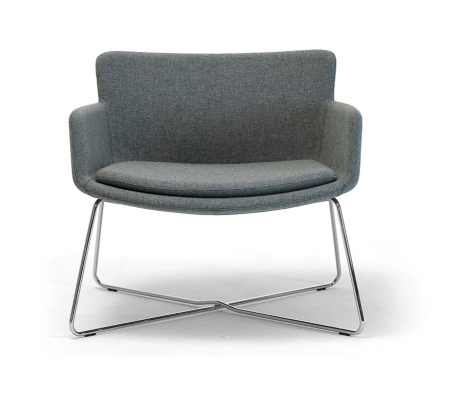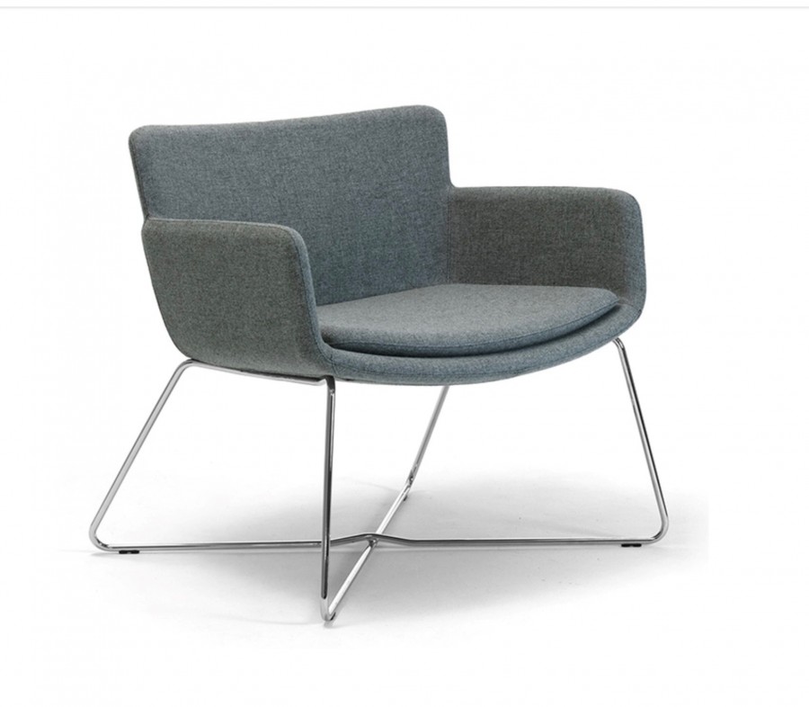 Harvard Lounge Chair / Rod Wire Frame / Cross X Shape For Added Strength & Stability / On Nylon Glides / Polished Chrome / Intergrated Arms / Moulded Polyurethane One Piece Shell / Fixed Seat Cushion With Bull Nose Edge For Added Comfort / Generous Seating Proportions / Offers Excellent Back Support / Fully Upholstered From Group 1 Fabric Upwards in Fabric, Vinyl or Leather / Upcharge Two Tone Upholstery / Cost Effective Option For Large Scale Projects / Ideal For Hospitality Environments / Corporate Lounge Areas / Hotel Lobby & Bedrooms / Airport Lounge Areas