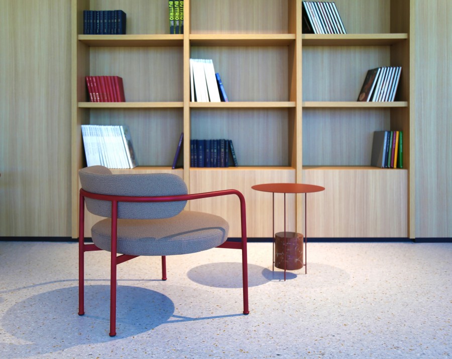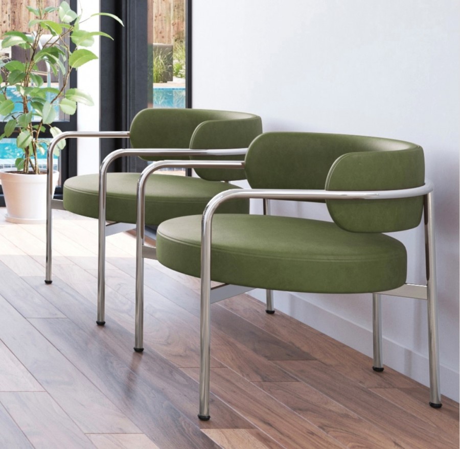 Prado Lounge Chair / Round Tubular Frame with Nylon Glides / Braced under seat for heavy contract use / Well Padded Seat and Back / Available in a Wide Choice of Paint Options / Upcharge for Polished Brass or Chrome Finish / Generous seating proportions / Comfortable curved back / Exposed Metal Support for Added Detail / Versatile Comfortable Lounge Chair for lobby and lounge areas.