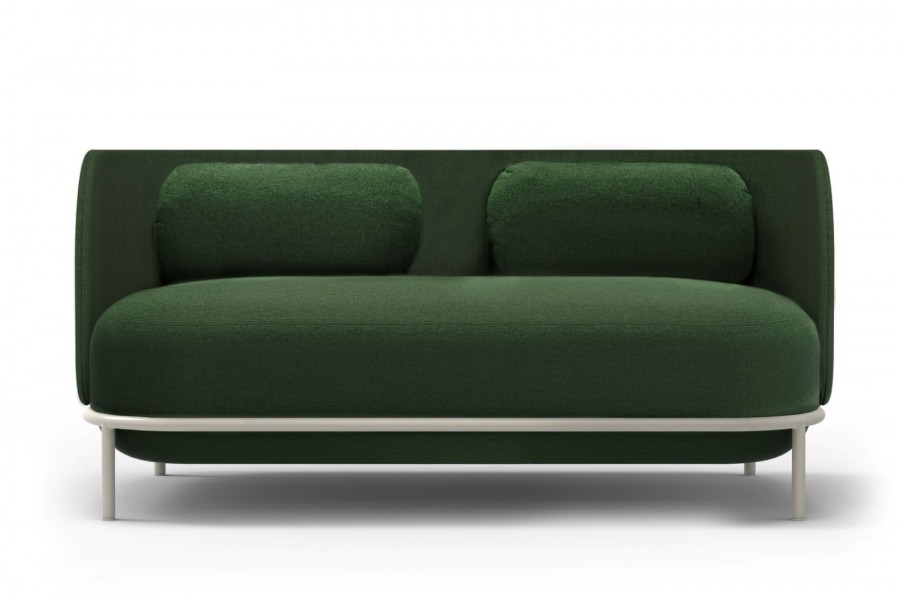 Skyline Collection: Part of A Wide Range Of Products / Two Seater Low Back / Curved Plywood Back Fully Upholstered / Available in Fabric Or Vinyl / Upholstered In A Wide Choice Of Colour Options / Well Padded Seat and Generous Seating Proportions / Back Cushion For Added Comfort / Sits Inside A Metal Round Tubular Frame / For Heavy Contract Use / On Nylon Glides / Painted finish in black and white standard / Upcharge for additional painted finishes and polished chrome and brass / Upcharge For Work Table With Built in Phone Charger / Can Be Specified With Vertical Stitching Lines On Inner and Outer Back For Added Detail / Ideal For All Work Collaboration Areas, Hotels, Private Airport Lounge Areas and Educational Use.