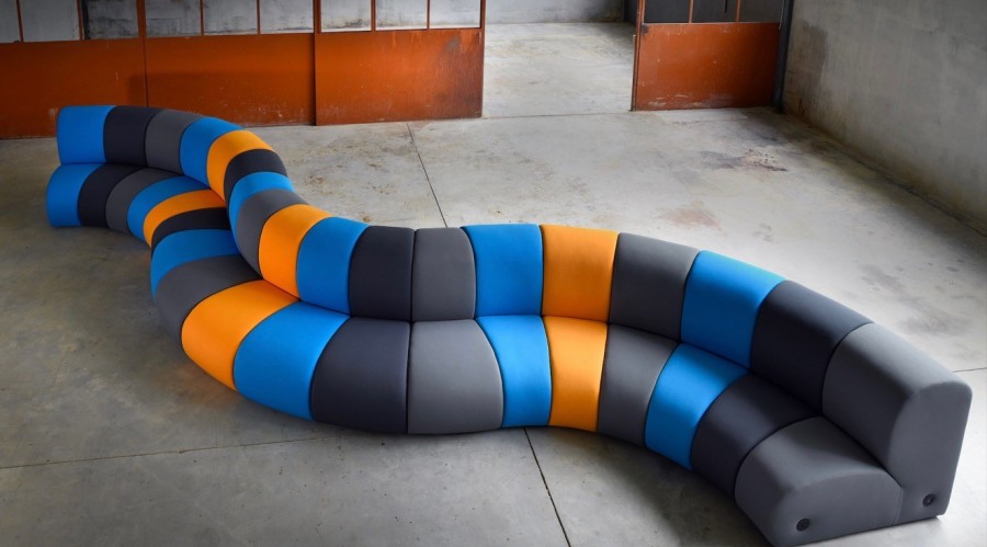 Studio 54 Collection is inspired by Studio 54 nightclub New York City From 1977 / Flexible Range Offering Various Configurations / Available in a Two Seater Straight Internal Unit and External Unit as standard / Straight Units available in various sizes subject to availability, please contact Area International to enquire / Timber Frame Construction / Fully Upholstered From Group 3 Fabric Upwards in Fabric, Vinyl or Leather / Cushions filling and padding in high resiliency polyurethane foam covered in dacron fiber. Structural frame in solid firwood. PVC feet / Upcharge for linking under frame (not visible) keeps modular seating from moving out of alignment / Upcharge for Two Tone or Three Tone Upholstery to enable for individual customisation (seat, inner-back and outer-back available in three colour options) / Ideal For all Reception / Lobby Areas / Private Airport Lounge Areas & Cocktail Bars Collaborative Space.