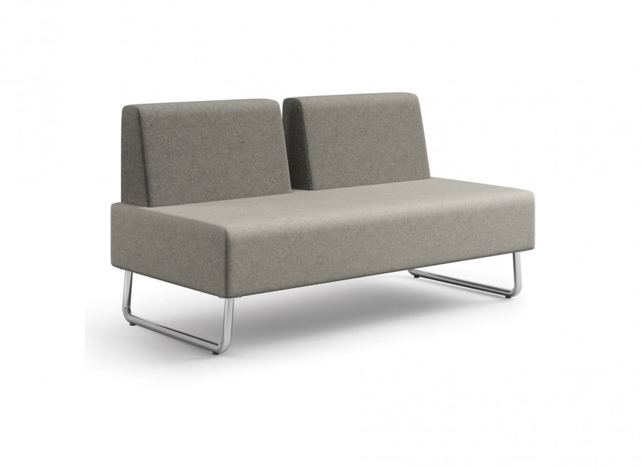 Subway Two Seater Bench with back / Clean Lined Modular Seating System / Open Ended For Ease of Reconfiguration & Adding Additional Units Side by Side or Back to Back / Timber Frame Construction / Polished Chrome Round Tube Sled Frame STD / Fully Upholstered / Upcharge for Two Tone Upholstery / Available in 1 or 2 Seater Formats / Designed for Heavy Duty Contract Use & Traffic / Free Standing Matching Table / Ideal For Lobby Areas / Airport Lounge Areas / Education / Work Collaborative Areas.