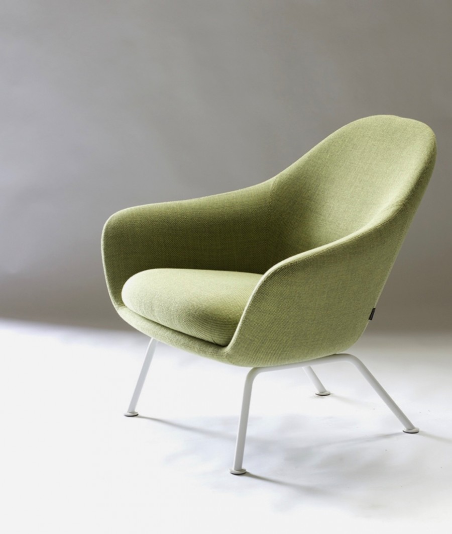 Viscay Medium Back Lounge Chair / Generous seating proportions / Seat cushion for added comfort / Integrated arms / Polyurethan shell / Black round tube metal legs / Upcharge for additional frame finishes including brass / Footrest stool also available to match / Can be upholstered in fabric, vinyl or leather / Upcharge for two-tone upholstery / Ideal for hospitality environments and the work place.