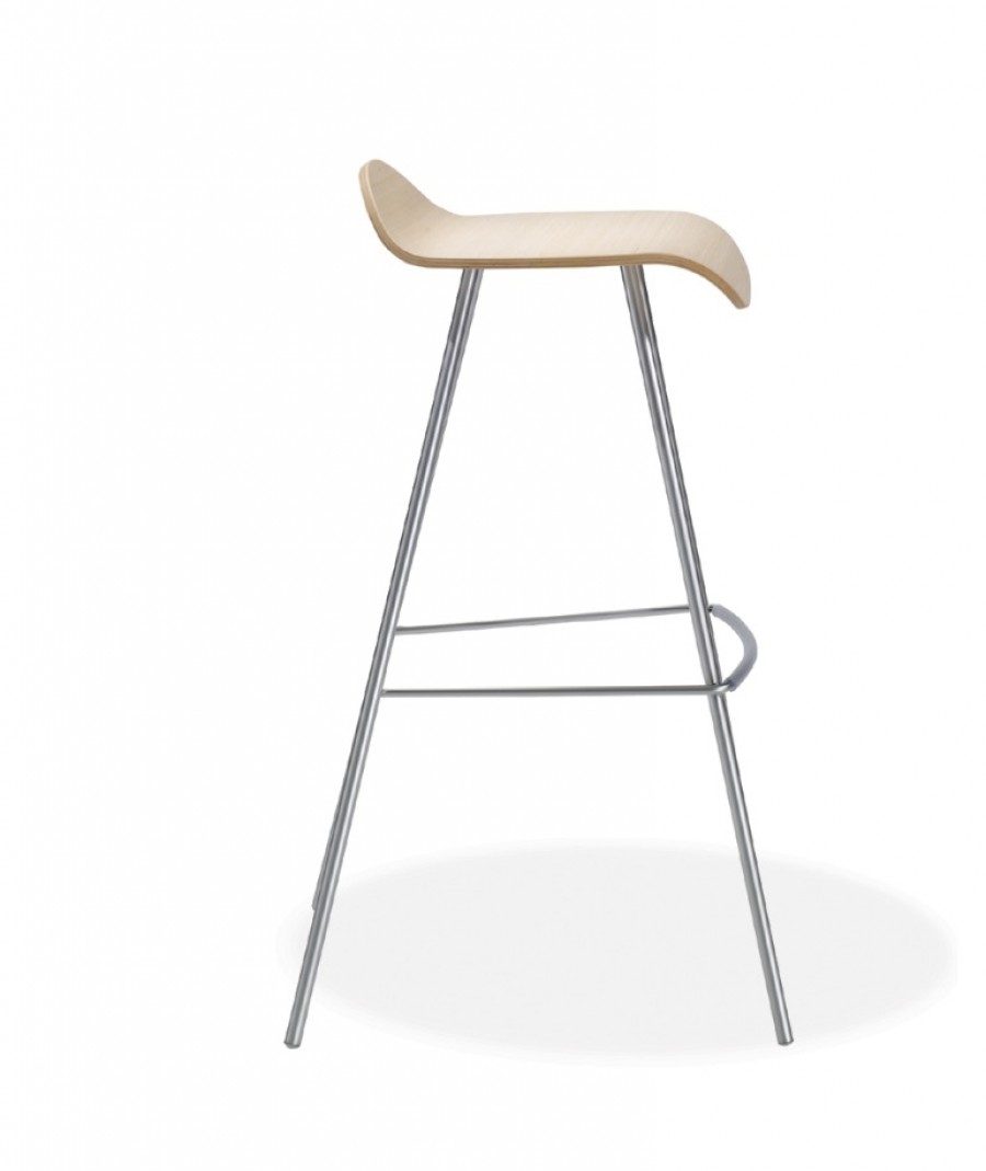 Levis 4 Leg Bar Height Stool / Multi Layered Plywood Seat / Beech STD / Upcharge Stained Wood Finish Oak, Wenge, Black Ash / Polished Chrome Frame STD / Painted Frame Black or White None Cost Option / Ideal For Bars, Restaurants, Coffee Shops, Hotels, Meeting Room Areas