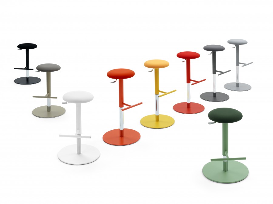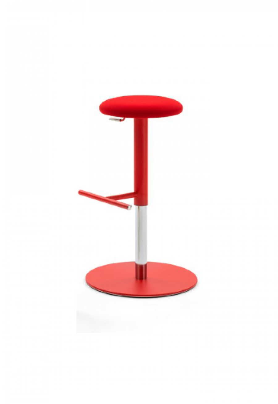 Portofino Bar Height Stool Disc Base / Upholstered Seat Matching Painted Disk Base and Foot Rest / Polished Chrome Column / as Height Adjustable / Ideal For Bars, Restaurants, Coffee Shops, Hotels, Meeting Room Areas