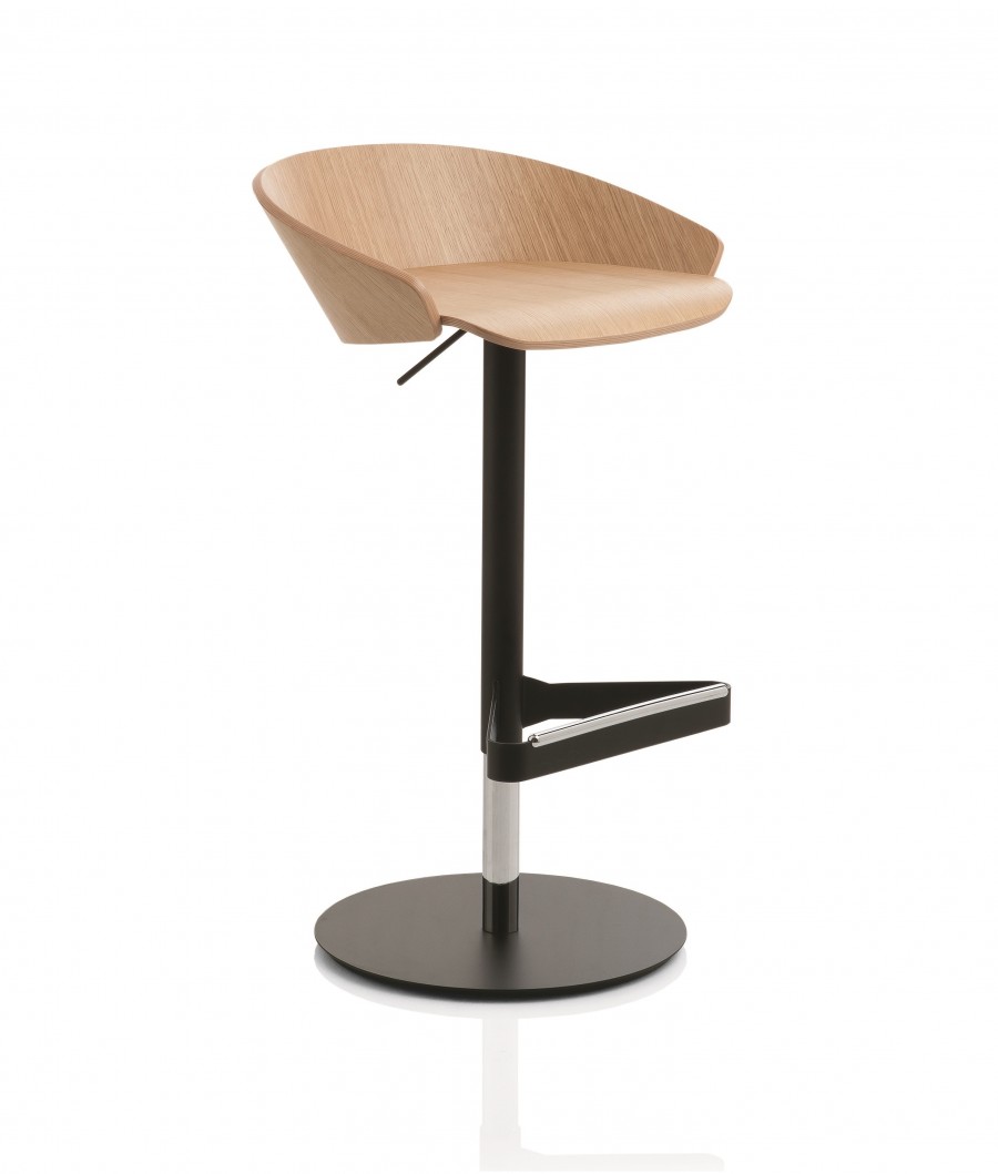 Utah Disc Base Barstool / Gas Height Adjustable / Swivel Frame / Painted Black Or White Disc Base Standard /Upcharge for Polished Chrome / Well Weighted Base For Contract Use / Multi Layered Plywood Seat / Wrap Around Plywood Back / Oak Finish Only For Seat / Integrated Footrest / Ideal For Restaurants, Corporate Area, Hospitality Venues, Cocktail Bars And Boutique Hotel Lobbies