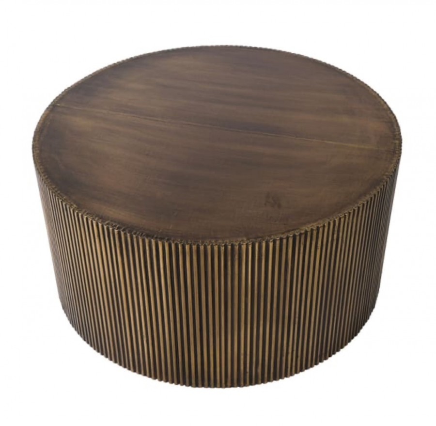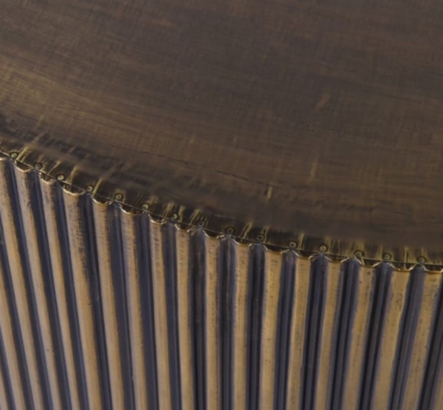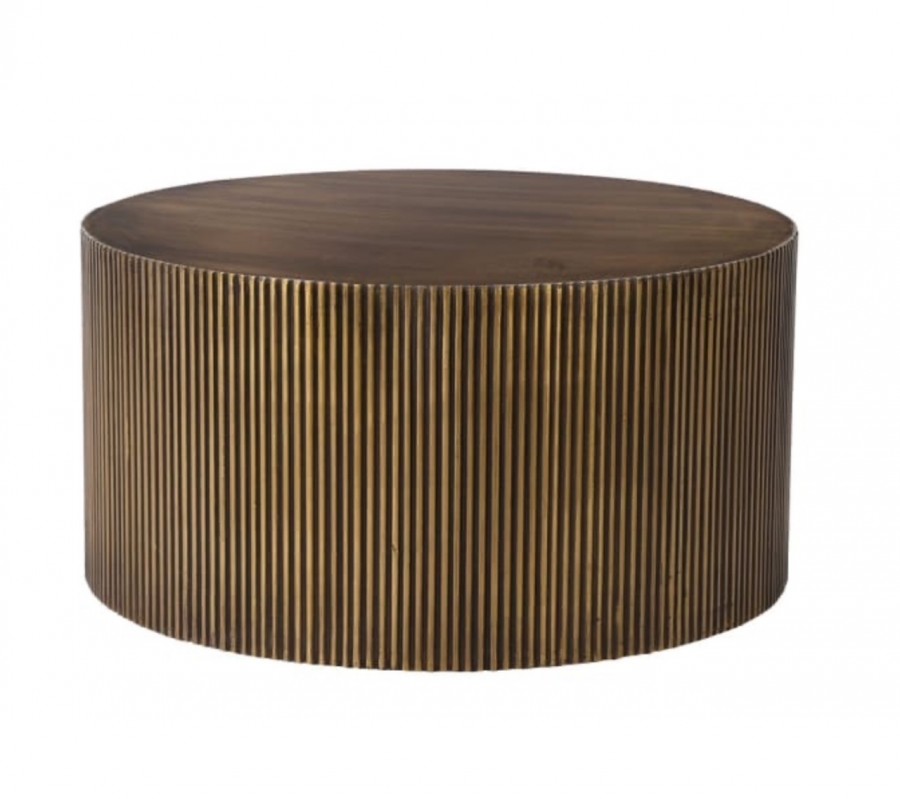Joshua Cocktail table / Crafted with a distinctive ribbed antique brass base, delivering a sophisticated, premium aesthetic / Manufactured from wood with an antique brass finish / Hand crafted / Ideal for all hotel lobby areas, cocktail bars or high end guest room suites