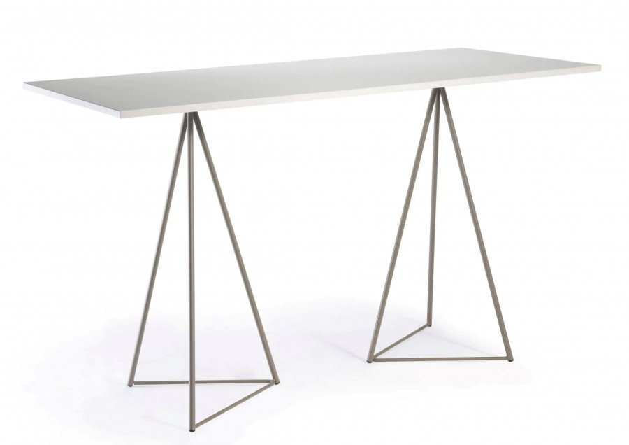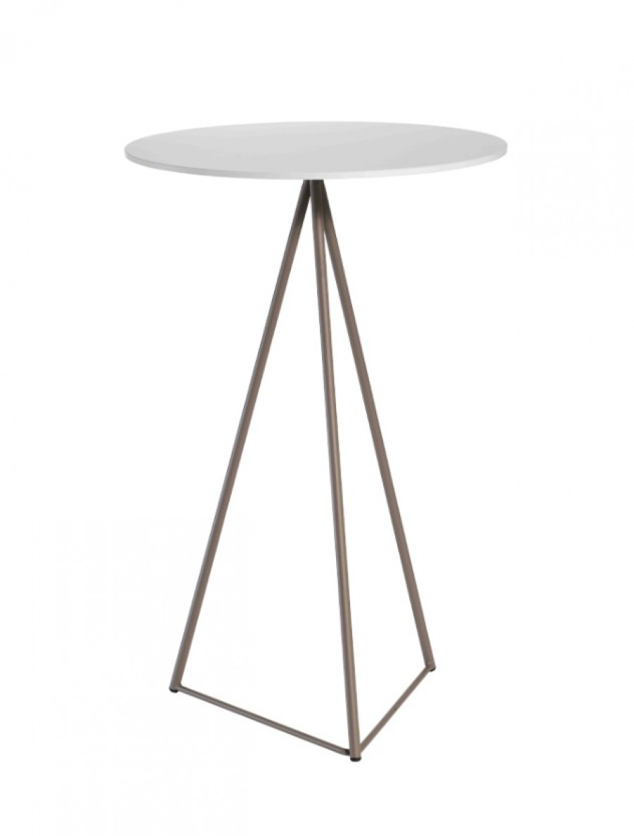Pyramid dining and bar table / Available with various size tops including square, rectangular and round format / Steel rodded base is available in various powder coated color finishes / Tops available in various laminate finishes / Ideal for all coffee shops, restaurants and bar areas.