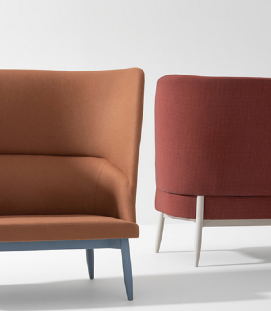Fargo 2 Seater High Back Sofa / High Back Design For Added Comfort / Beech Plywood Frame / Upcharge for Additional Wood Stain & Painted Finish / 4 Leg Round Wood / Back Legs Continue Up into the Back of the Chair for Added Strength, Support & Design Feature / Fully Braced / Acoustic Sound Proofing / Generous Seating Proportions / Well Padded Back / Fully Upholstered in a Wide choice of Fabrics & Premium Leathers / Upcharge Two Tone Upholstery / Matching Foot Stool / Ideal for Lobby Areas And Hospitality Areas