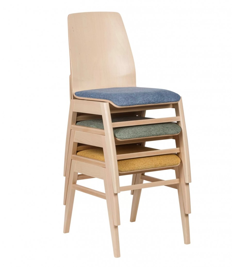 Allegro Side Chair / Robust frame / Beech frame standard / Matching beech plywood shell standard / High back offers excellent back support when seated for long periods of time / Tapered legs / Braced all round for heavy contract use / Frame and shell available in various wood stain finishes as upcharge / Upholstered seat pad standard / Upcharge for fully upholstered version / Can be upholstered in fabric, vinyl or leather in a wide choice of colour options / Stackable 10 high / Upcharge for linking / Ideal for all educational purposes, senior living and medical environments, conference centres, churches and synagogues.