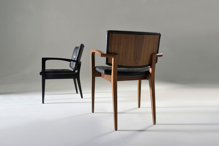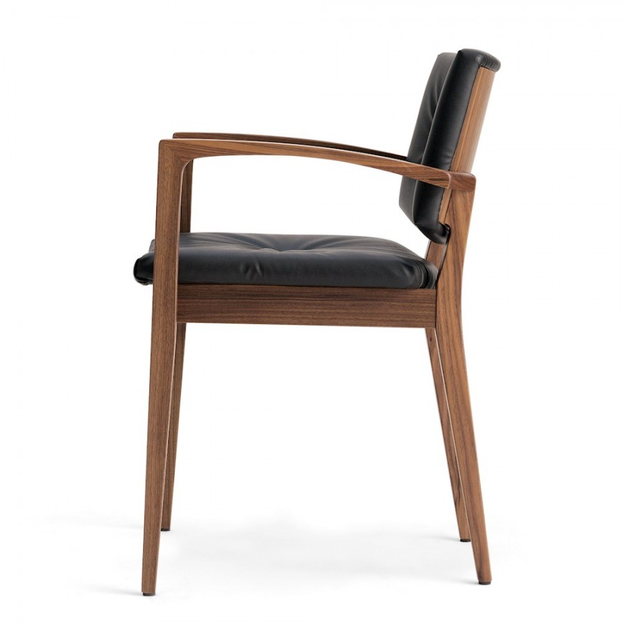 Eileen Gray Vintage Collection / Arm Chair / Curvature Integrated Arms / Solid Beech Frame STD / Tapered Legs / Outerback Plywood to Match Frame / Wood Stain Finishes None Cost Option / Upcharge American Solid Walnut / Fully Braced All Round For Heavy Contract Use / Fully Upholstered From Group 3 Fabric in Fabric, Vinyl or Leather / Button Seat & Back / Well Padded Seat & Back Fixed Cushion / Ideal For Boutique Hotels / Restaurant & Hotel Environemnts