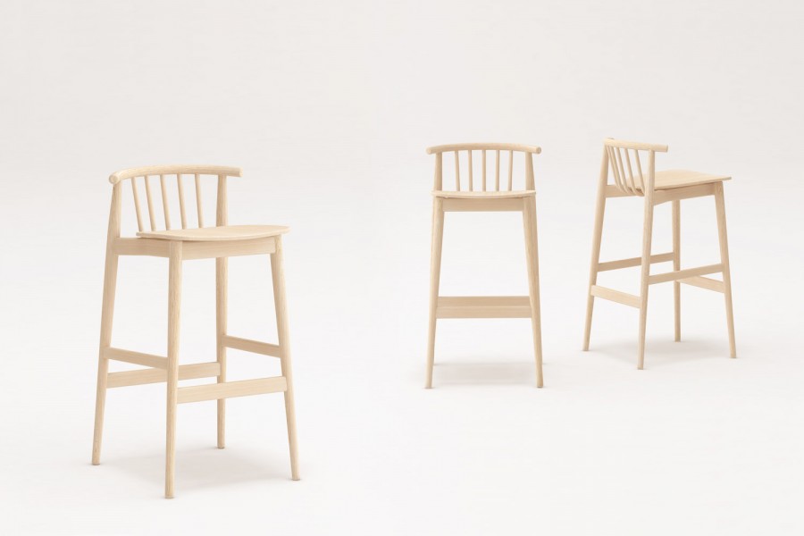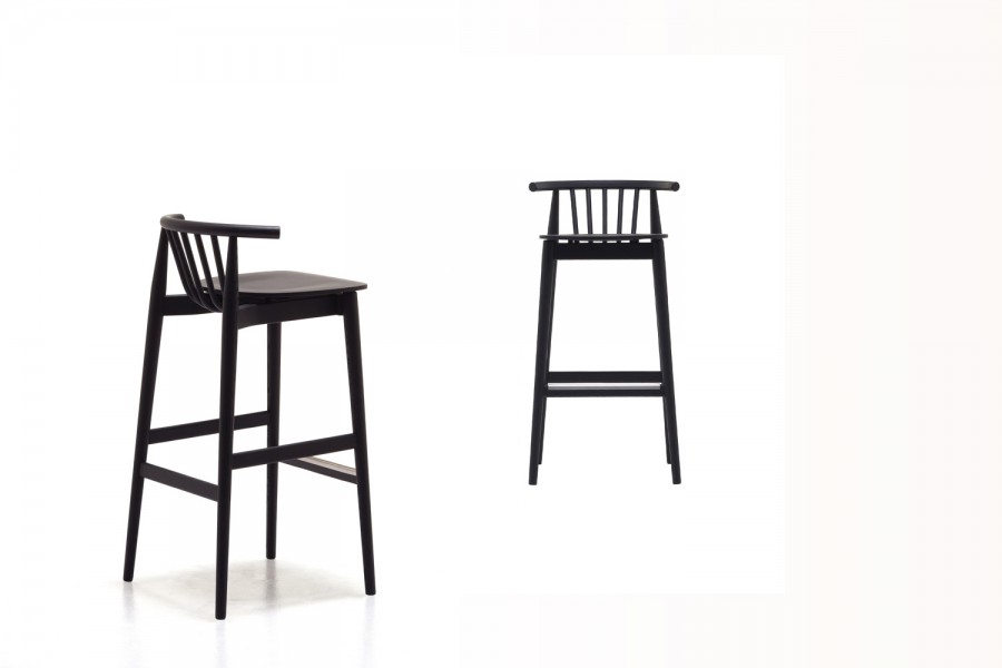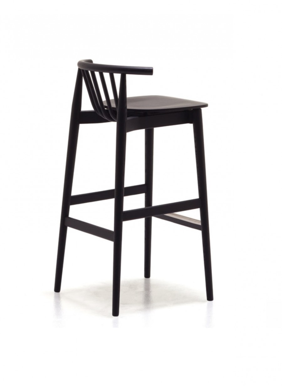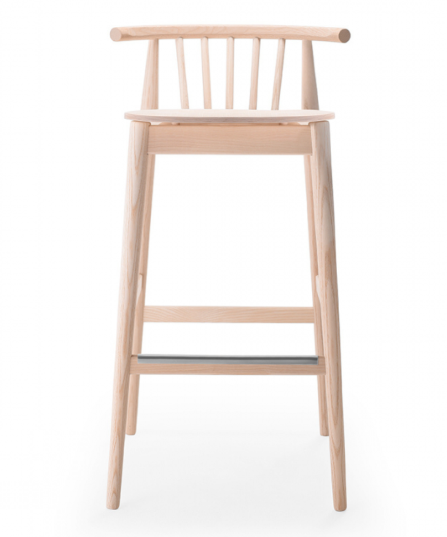 Woodstock Bar & Counter Height Stool / Traditional Look With Elegant & Simple Design / Curved Wooden Spindle Back / Tapered Legs / On Glides / Braced All Round / With Footrest / Ash Frame STD / Upcharge Additional Wood Stain Finish / Upcharge Seat Pad / Matching Side Chair / Ideal For Dining Applications / Café & Restaurant / Pizzeria & Steak House.